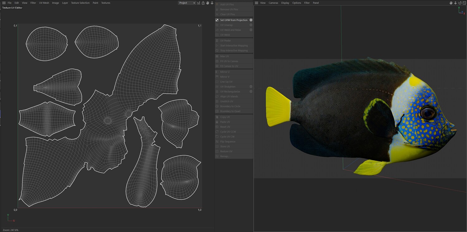 INFO: - Asymmetrical fish 3d model - Textures embedded in blender too - Ready to render in Blender with Cycles/EEVEE - Made in Cinema 4d - Auto UV and Auto topolgy done in cinema 4d - Cinema 4d and blender 3d files are textured linked - 4k Textures, Only Diffuse map - Bump and SSS also used in blender - UV mapped - Best for publication, visualition etc.