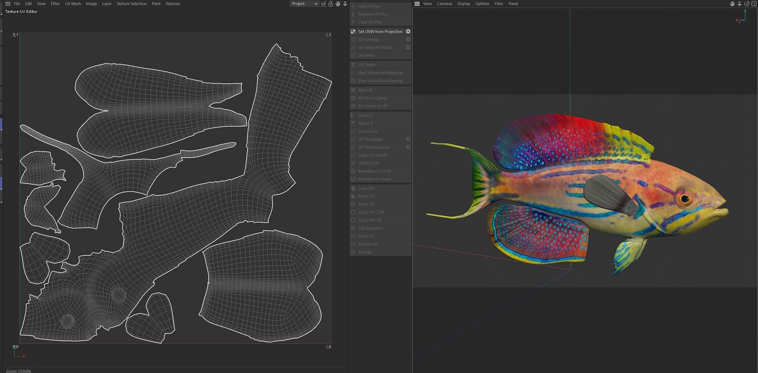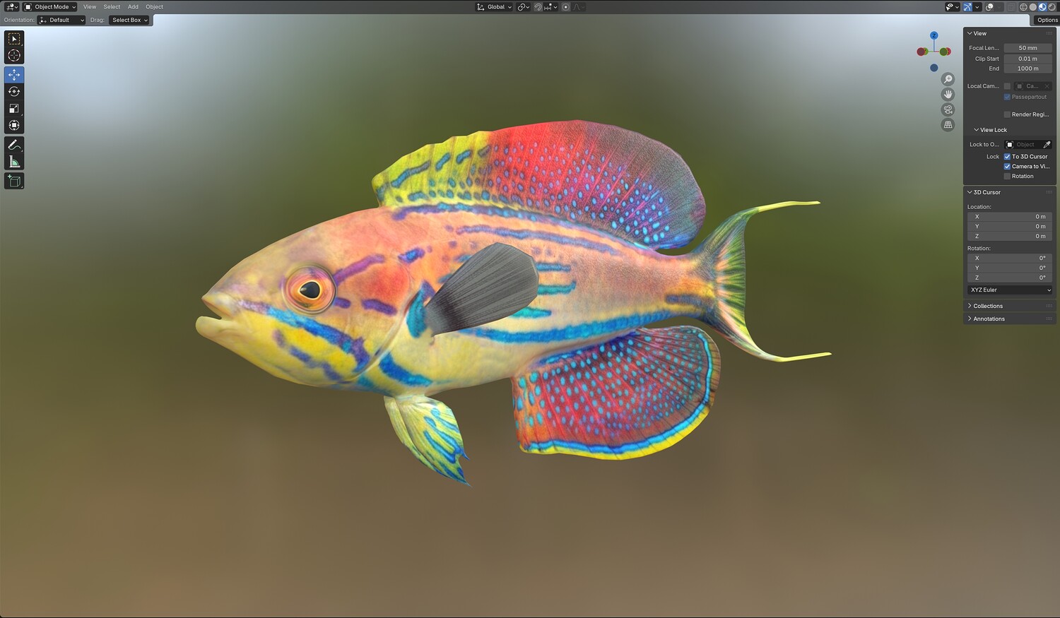 INFO: - Asymmetrical fish 3d model - Textures embedded in blender too - Ready to render in Blender with Cycles/EEVEE - Made in Cinema 4d - Auto UV and Auto topolgy done in cinema 4d - Cinema 4d and blender 3d files are textured linked - 4k Textures, Only Diffuse map - Bump and SSS also used in blender - UV mapped - Best for publication, visualition etc.