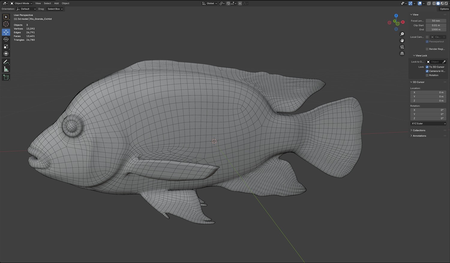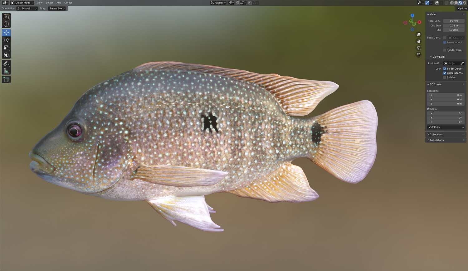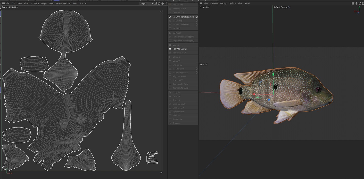 INFO: - Asymmetrical fish 3d model - Textures embedded in blender too - Ready to render in Blender with Cycles/EEVEE - Made in Cinema 4d - Auto UV and Auto topolgy done in cinema 4d - Cinema 4d and blender 3d files are textured linked - 4k Textures, Only Diffuse map - Bump and SSS also used in blender - UV mapped - Best for publication, visualition etc.
