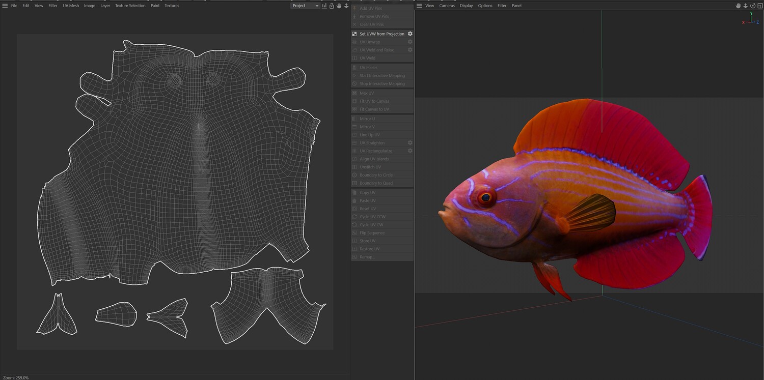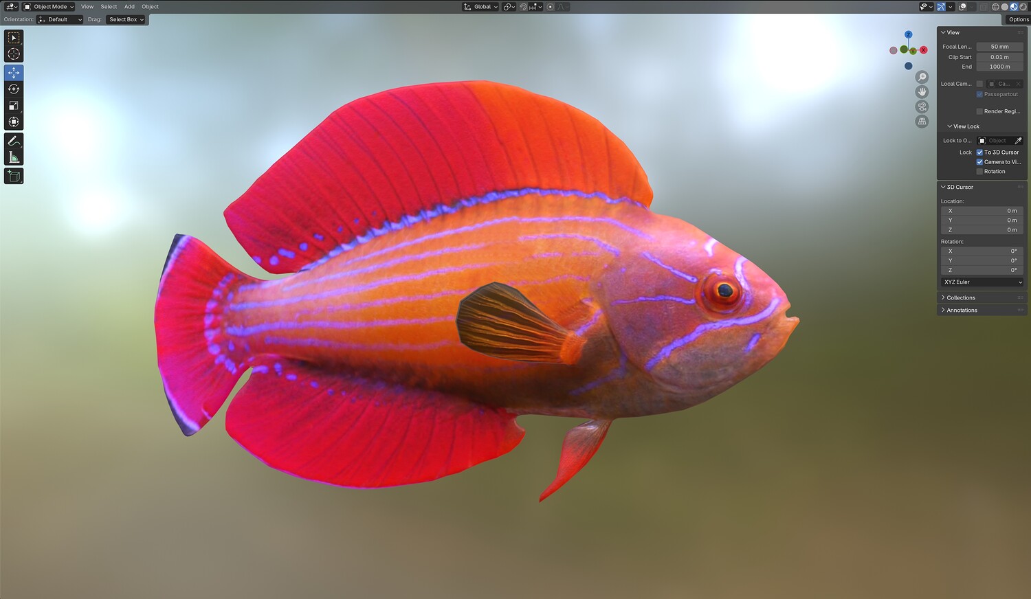 INFO: - Asymmetrical fish 3d model - Textures embedded in blender too - Ready to render in Blender with Cycles/EEVEE - Made in Cinema 4d - Auto UV and Auto topolgy done in cinema 4d - Cinema 4d and blender 3d files are textured linked - 4k Textures, Only Diffuse map - Bump and SSS also used in blender - UV mapped - Best for publication, visualition etc.