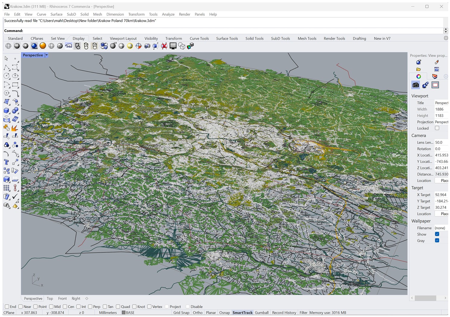 Accurate 3D city model and its surrounding area based on GIS data Year 2023