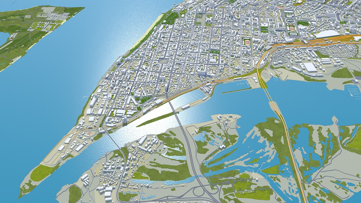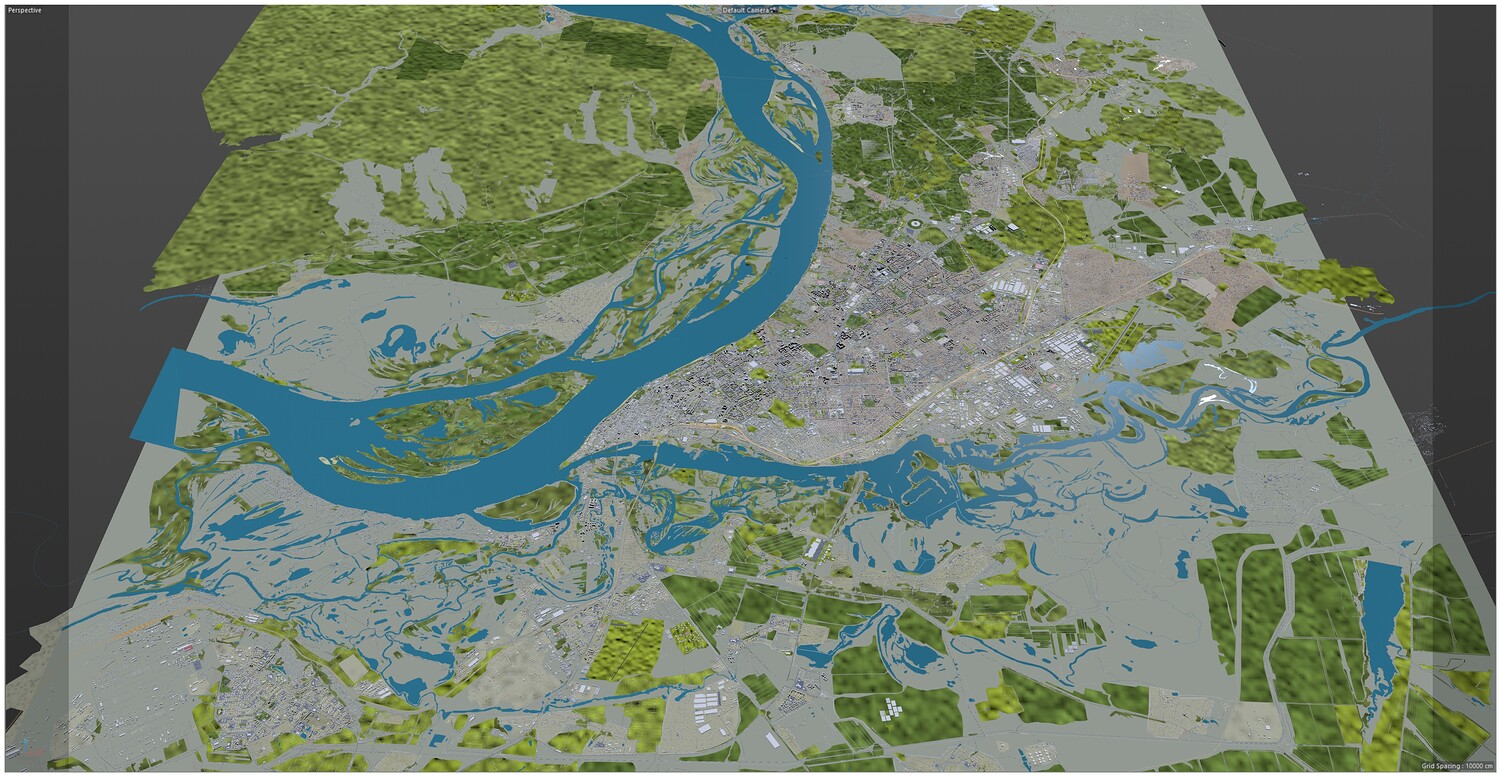 Accurate 3D city model and its surrounding area based on GIS data Year 2023