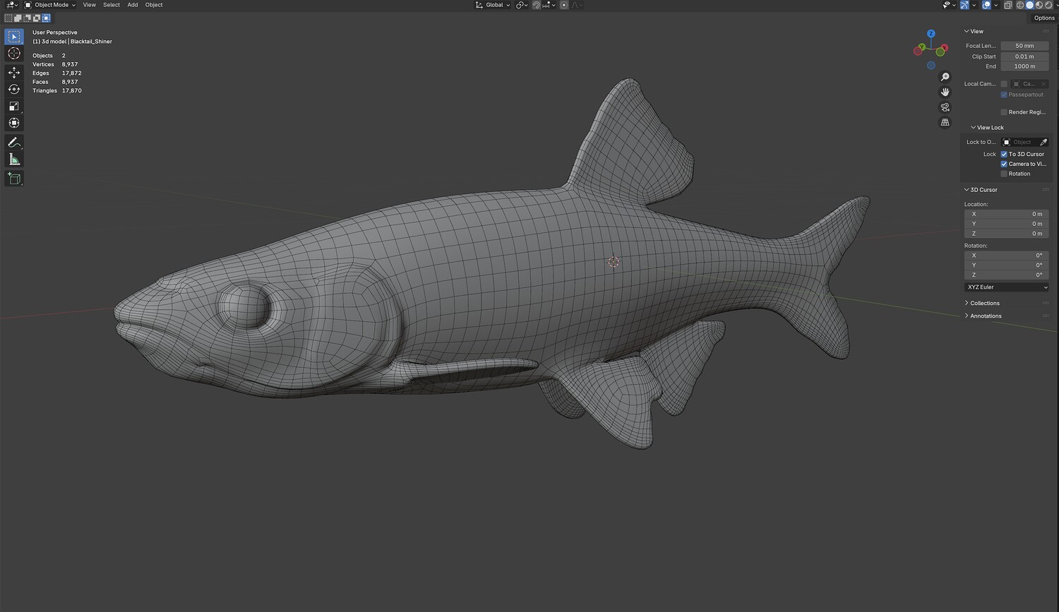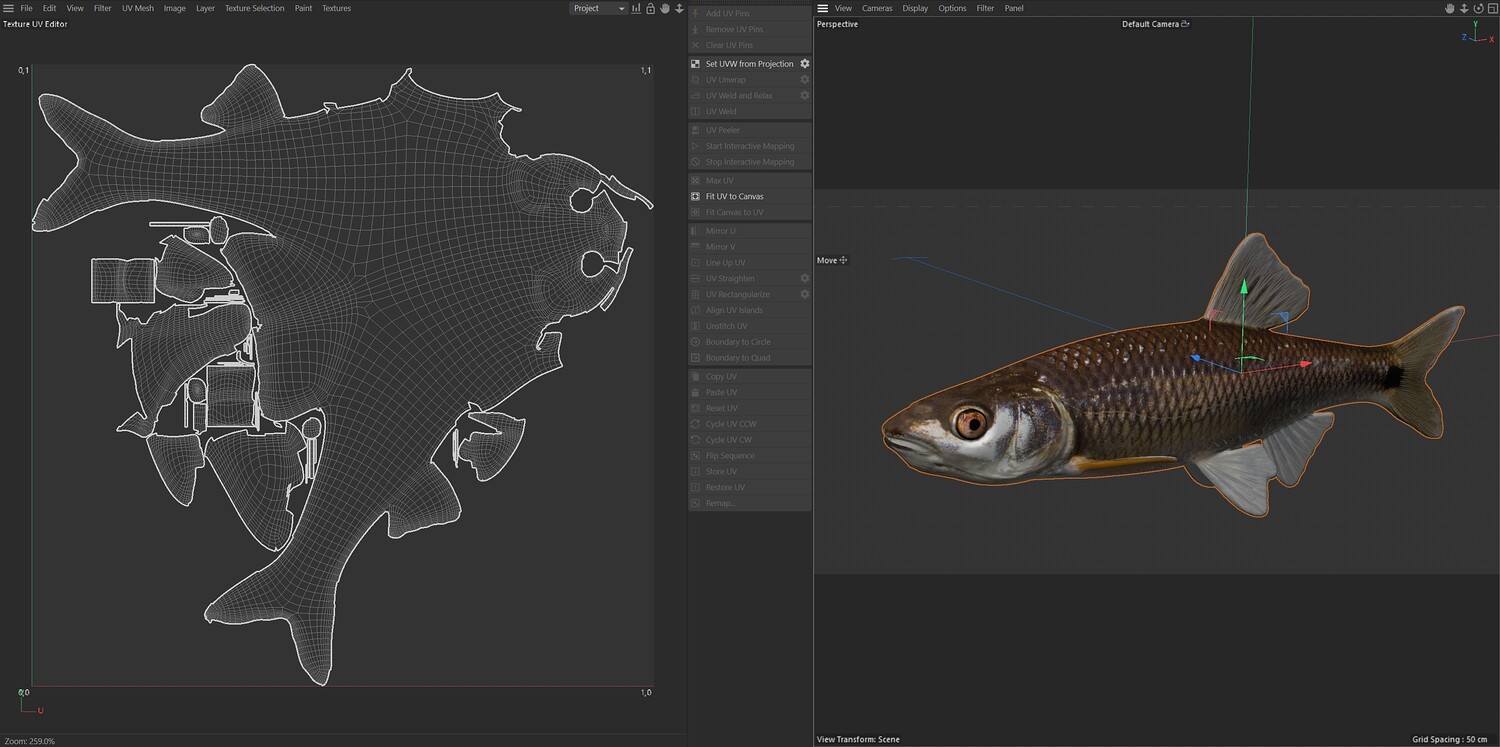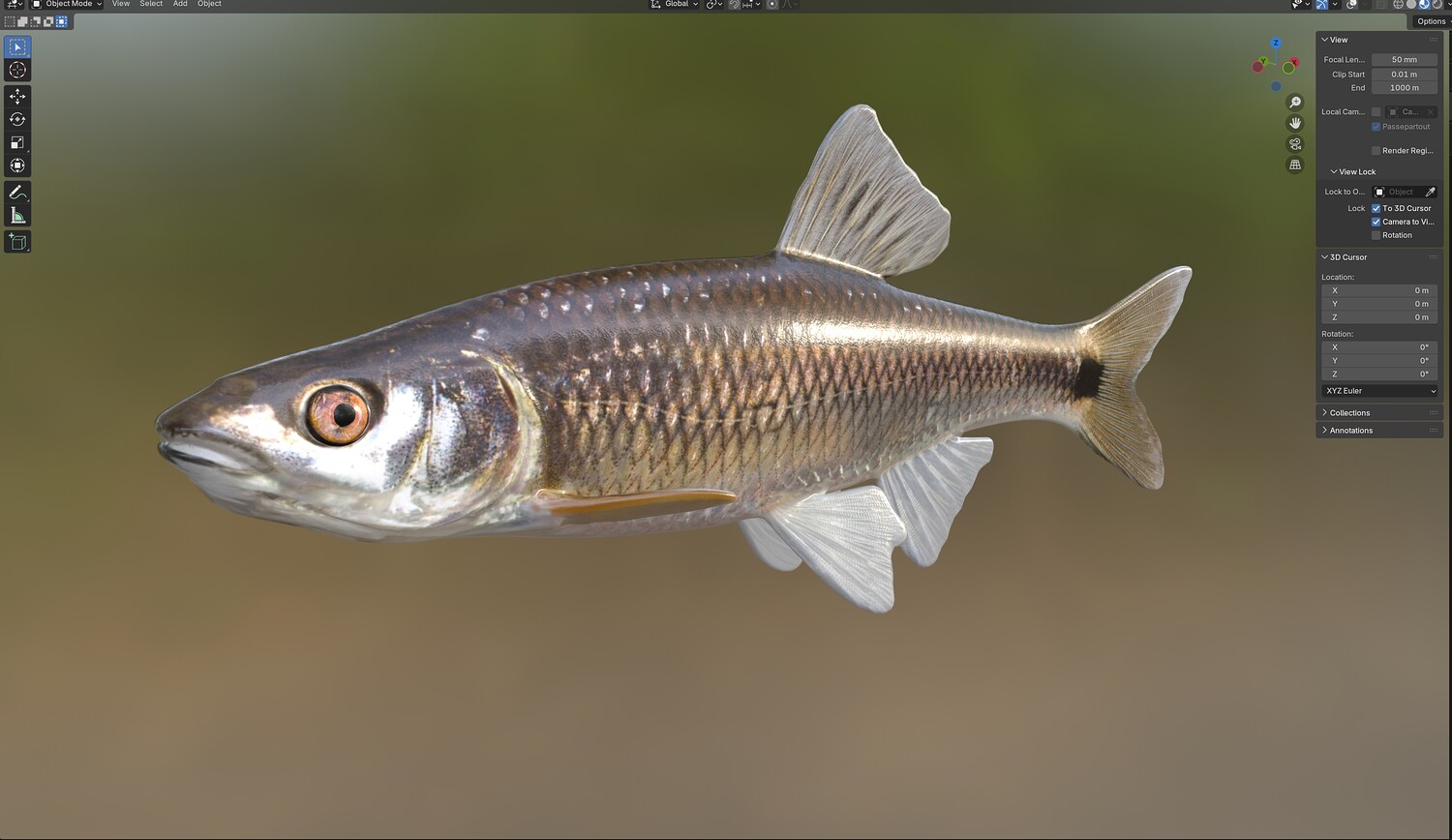 INFO: - Asymmetrical fish 3d model - Textures embedded in blender too - Ready to render in Blender with Cycles/EEVEE - Made in Cinema 4d - Auto UV and Auto topolgy done in cinema 4d - Cinema 4d and blender 3d files are textured linked - 4k Textures, Only Diffuse map - Bump and SSS also used in blender - UV mapped - Best for publication, visualition etc.