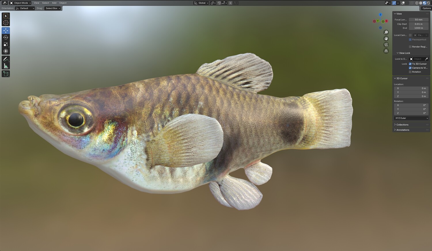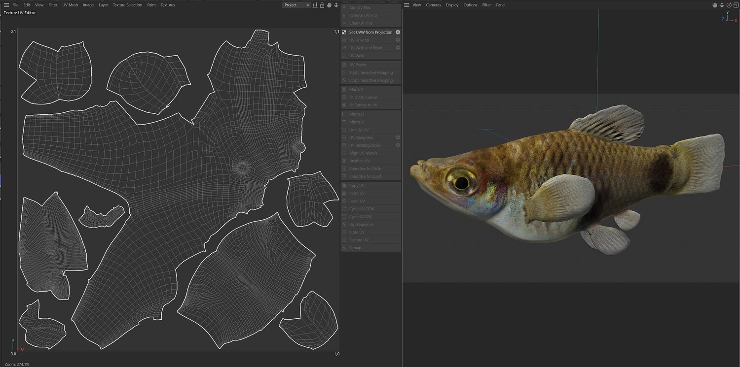 INFO: - Asymmetrical fish 3d model - Textures embedded in blender too - Ready to render in Blender with Cycles/EEVEE - Made in Cinema 4d - Auto UV and Auto topolgy done in cinema 4d - Cinema 4d and blender 3d files are textured linked - 4k Textures, Only Diffuse map - Bump and SSS also used in blender - UV mapped - Best for publication, visualition etc.