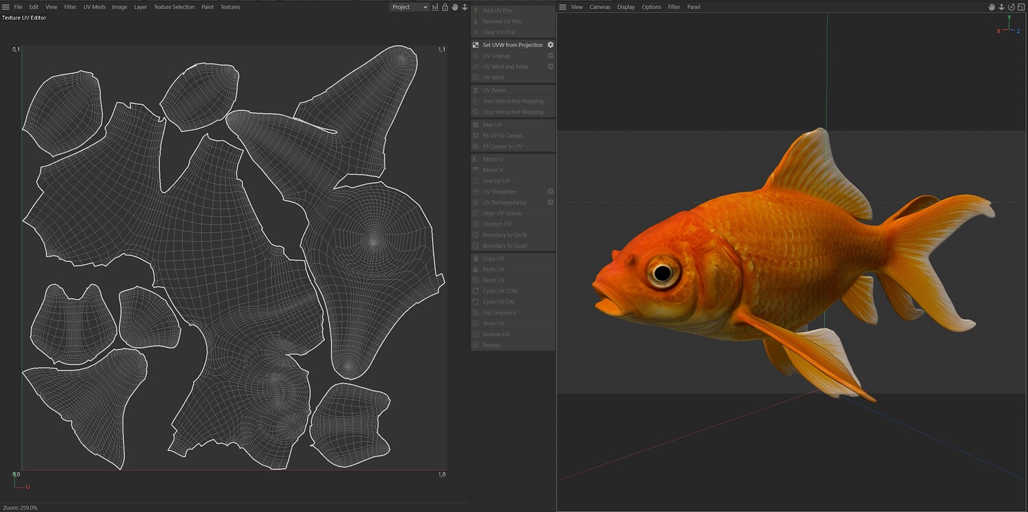 INFO: - Asymmetrical fish 3d model - Textures embedded in blender too - Ready to render in Blender with Cycles/EEVEE - Made in Cinema 4d - Auto UV and Auto topolgy done in cinema 4d - Cinema 4d and blender 3d files are textured linked - 4k Textures, Only Diffuse map - Bump and SSS also used in blender - UV mapped - Best for publication, visualition etc.