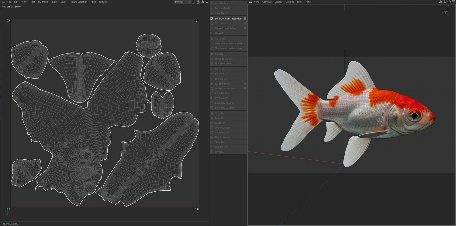 INFO: - Asymmetrical fish 3d model - Textures embedded in blender too - Ready to render in Blender with Cycles/EEVEE - Made in Cinema 4d - Auto UV and Auto topolgy done in cinema 4d - Cinema 4d and blender 3d files are textured linked - 4k Textures, Only Diffuse map - Bump and SSS also used in blender - UV mapped - Best for publication, visualition etc.