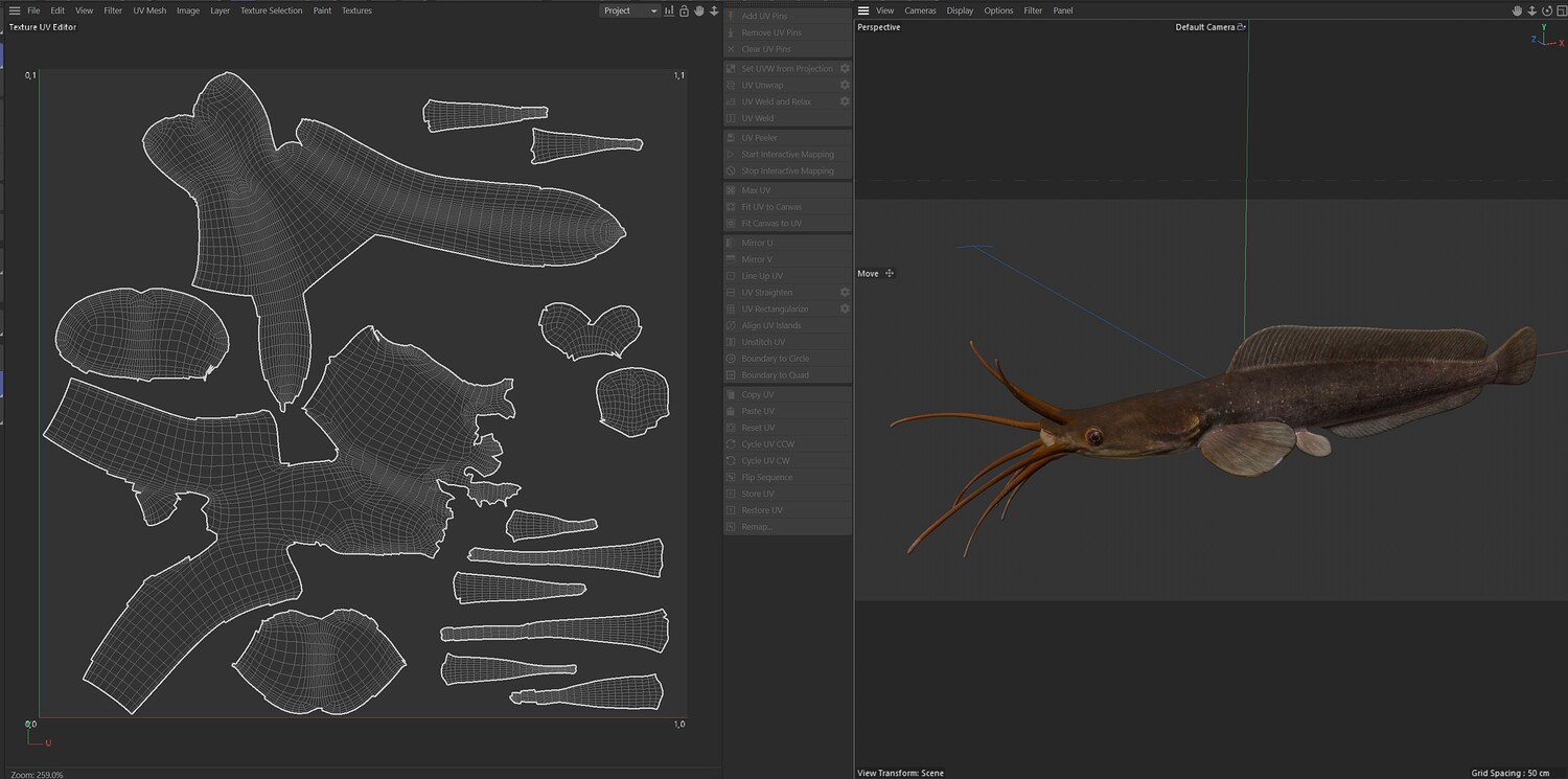 INFO: - Asymmetrical fish 3d model - Textures embedded in blender too - Ready to render in Blender with Cycles/EEVEE - Made in Cinema 4d - Auto UV and Auto topolgy done in cinema 4d - Cinema 4d and blender 3d files are textured linked - 4k Textures, Only Diffuse map - Bump and SSS also used in blender - UV mapped - Best for publication, visualition etc.