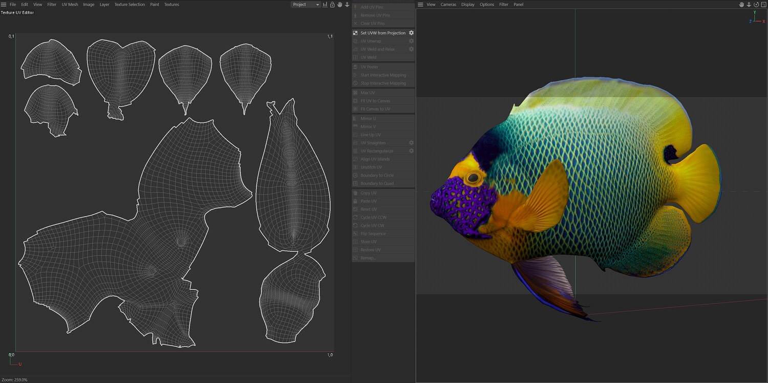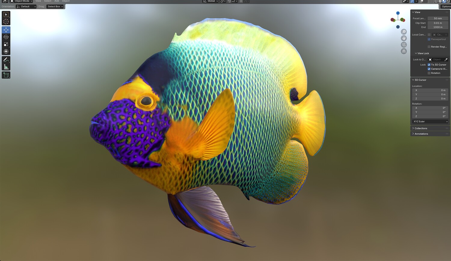 INFO: - Asymmetrical fish 3d model - Textures embedded in blender too - Ready to render in Blender with Cycles/EEVEE - Made in Cinema 4d - Auto UV and Auto topolgy done in cinema 4d - Cinema 4d and blender 3d files are textured linked - 4k Textures, Only Diffuse map - Bump and SSS also used in blender - UV mapped - Best for publication, visualition etc.