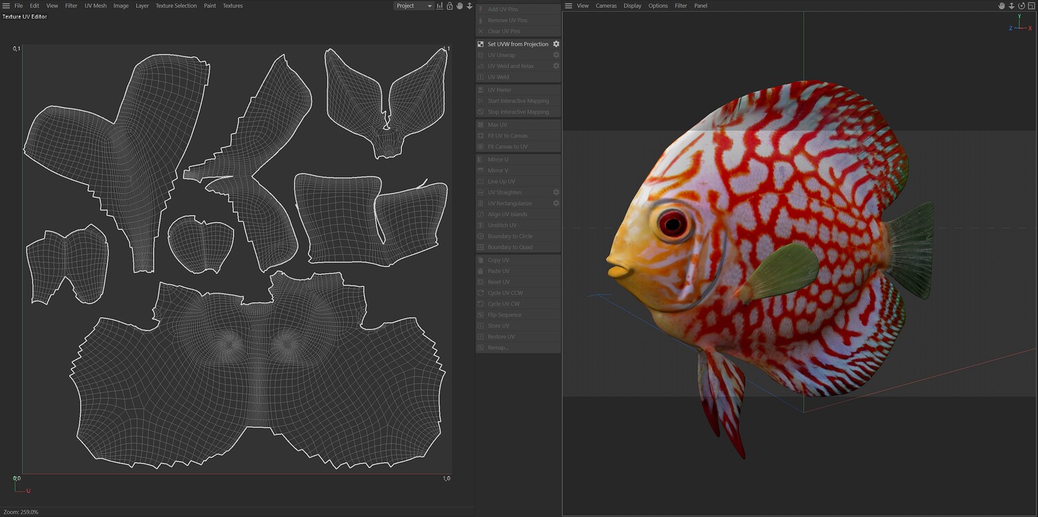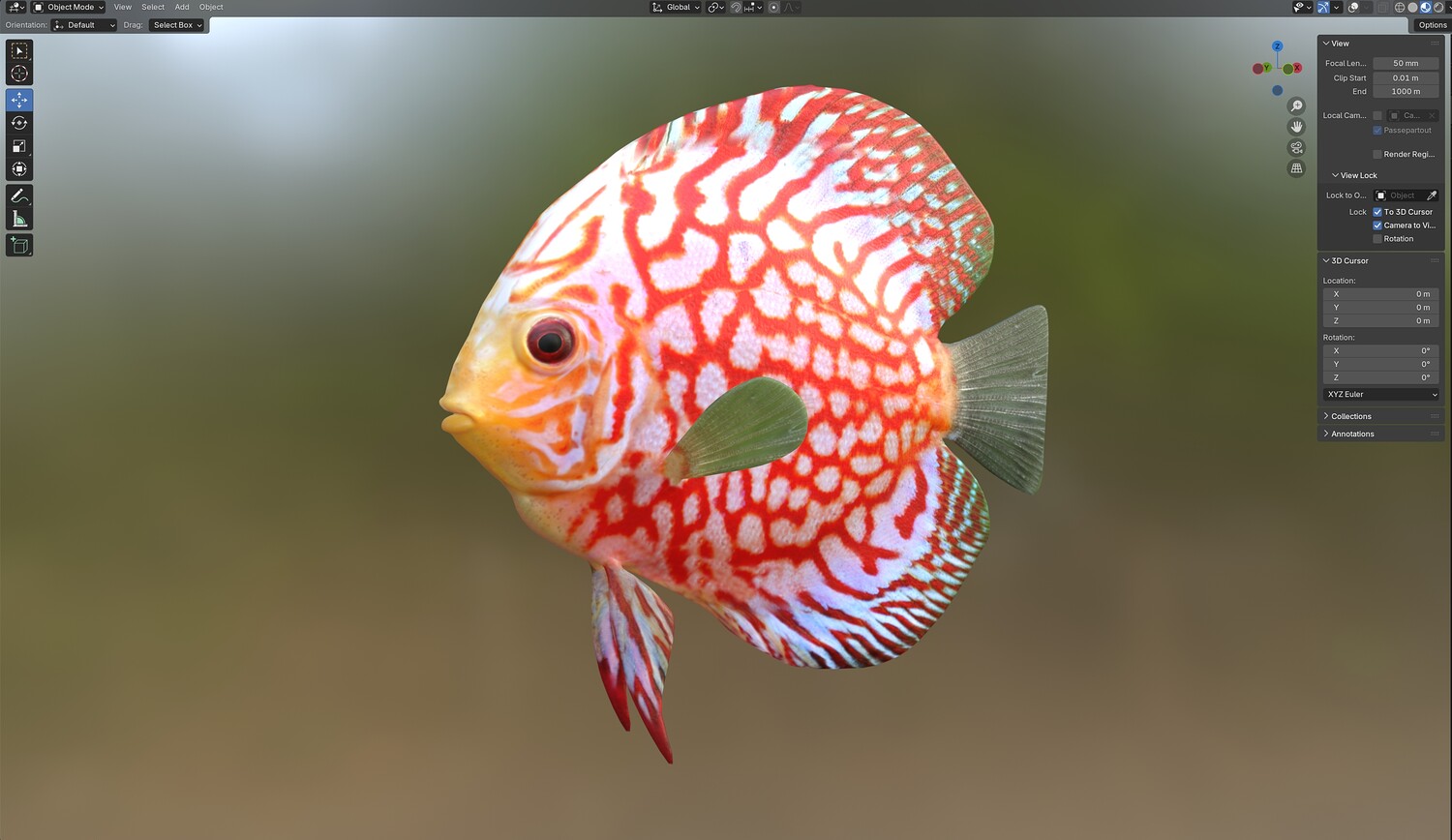 INFO: - Asymmetrical fish 3d model - Textures embedded in blender too - Ready to render in Blender with Cycles/EEVEE - Made in Cinema 4d - Auto UV and Auto topolgy done in cinema 4d - Cinema 4d and blender 3d files are textured linked - 4k Textures, Only Diffuse map - Bump and SSS also used in blender - UV mapped - Best for publication, visualition etc.