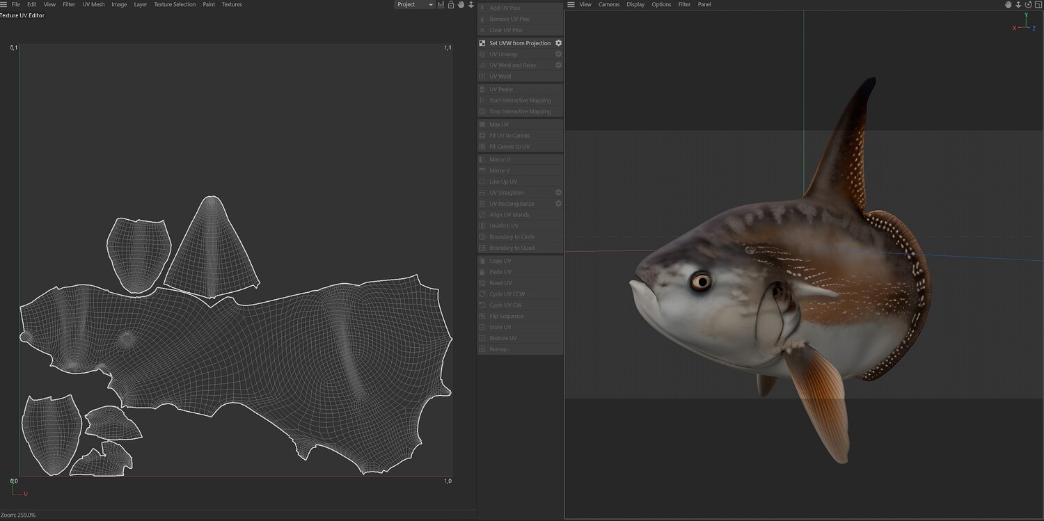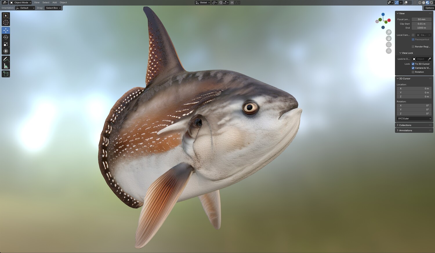 INFO: - Asymmetrical fish 3d model - Textures embedded in blender too - Ready to render in Blender with Cycles/EEVEE - Made in Cinema 4d - Auto UV and Auto topolgy done in cinema 4d - Cinema 4d and blender 3d files are textured linked - 4k Textures, Only Diffuse map - Bump and SSS also used in blender - UV mapped - Best for publication, visualition etc.