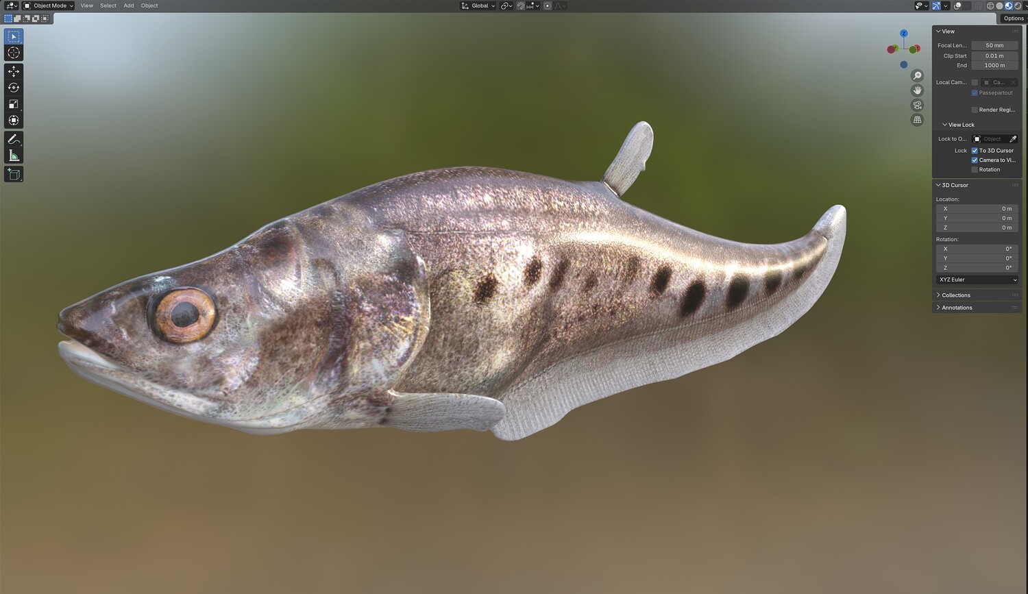 INFO: - Asymmetrical fish 3d model - Textures embedded in blender too - Ready to render in Blender with Cycles/EEVEE - Made in Cinema 4d - Auto UV and Auto topolgy done in cinema 4d - Cinema 4d and blender 3d files are textured linked - 4k Textures, Only Diffuse map - Bump and SSS also used in blender - UV mapped - Best for publication, visualition etc.
