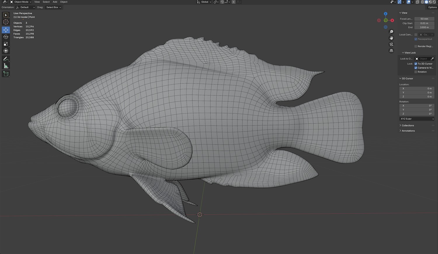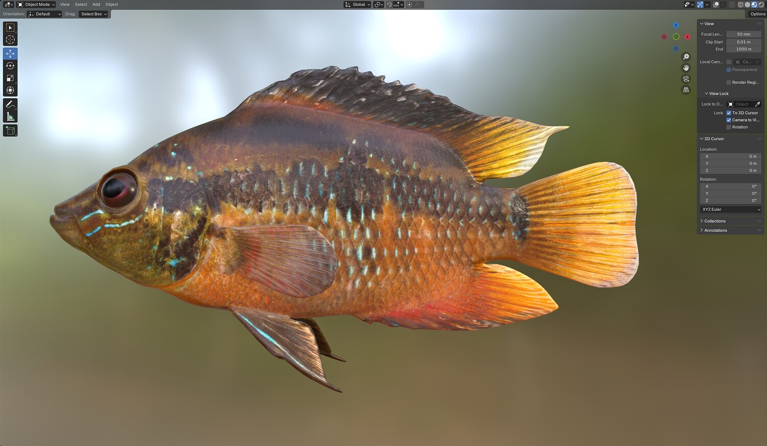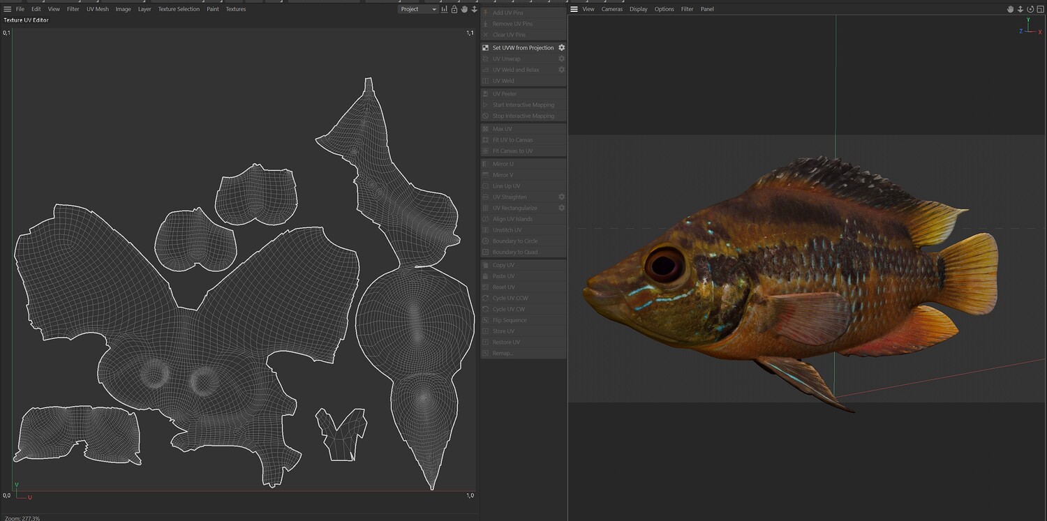 INFO: - Asymmetrical fish 3d model - Textures embedded in blender too - Ready to render in Blender with Cycles/EEVEE - Made in Cinema 4d - Auto UV and Auto topolgy done in cinema 4d - Cinema 4d and blender 3d files are textured linked - 4k Textures, Only Diffuse map - Bump and SSS also used in blender - UV mapped - Best for publication, visualition etc.