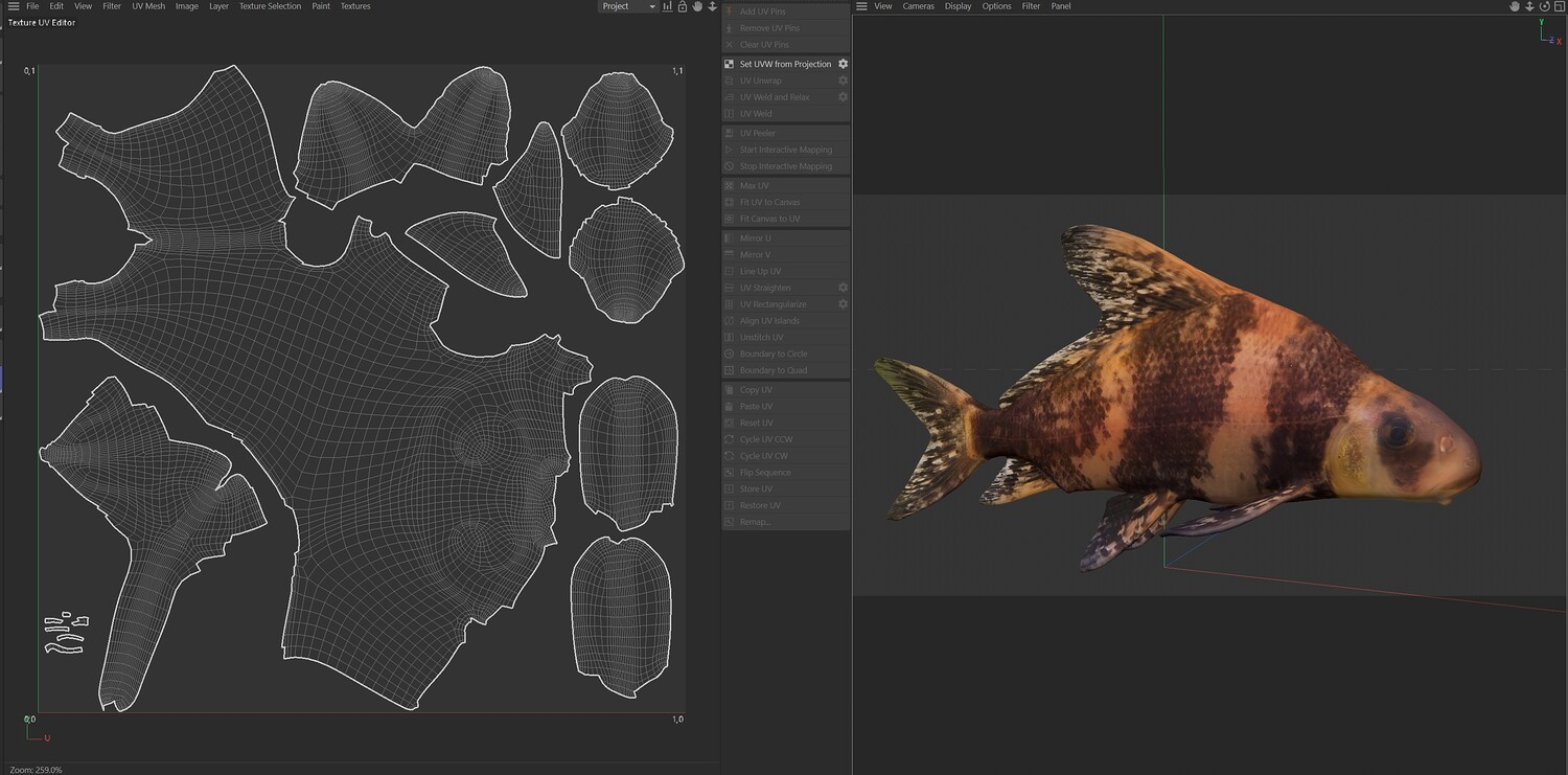 INFO: - Asymmetrical fish 3d model - Textures embedded in blender too - Ready to render in Blender with Cycles/EEVEE - Made in Cinema 4d - Auto UV and Auto topolgy done in cinema 4d - Cinema 4d and blender 3d files are textured linked - 4k Textures, Only Diffuse map - Bump and SSS also used in blender - UV mapped - Best for publication, visualition etc.