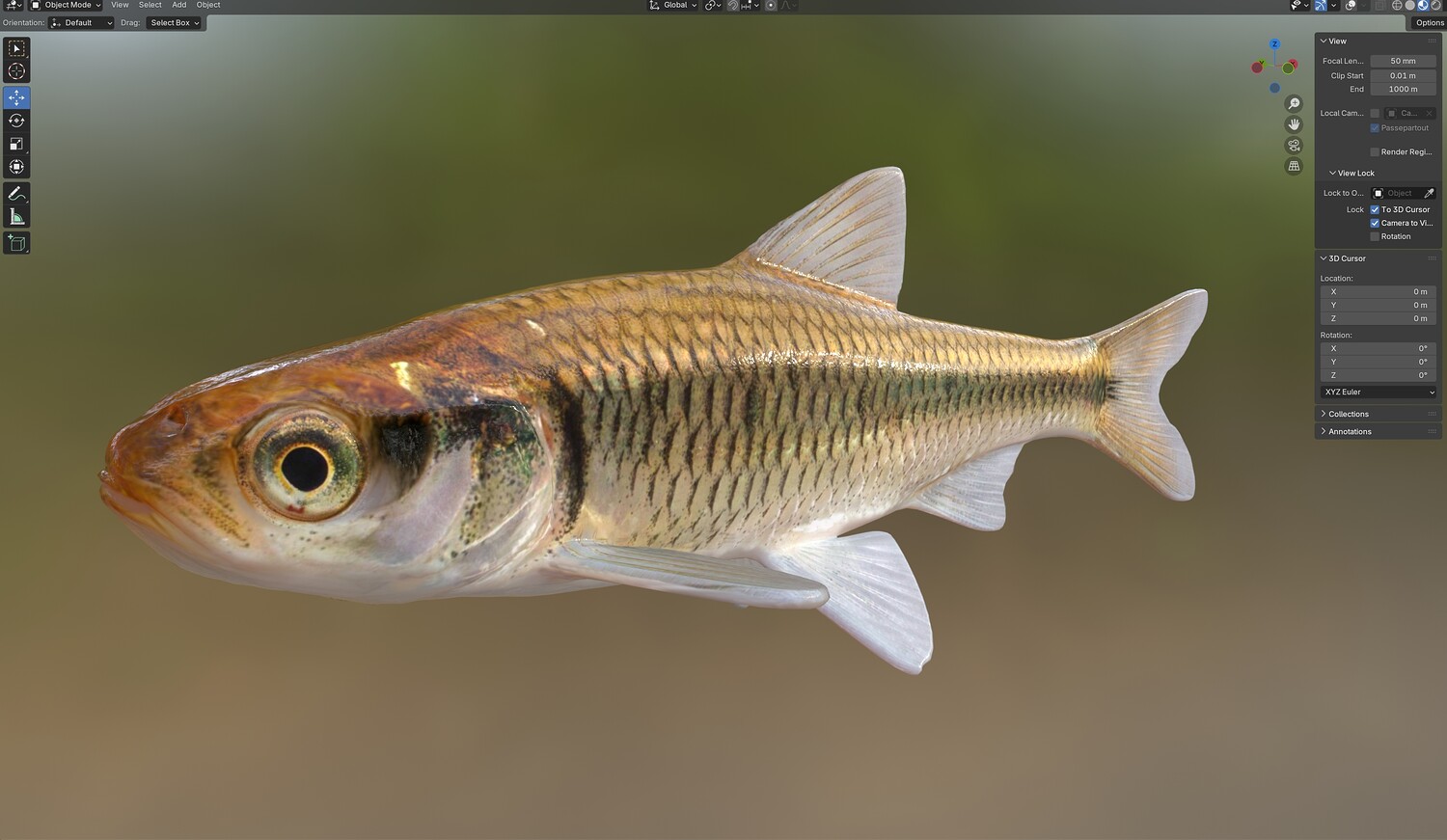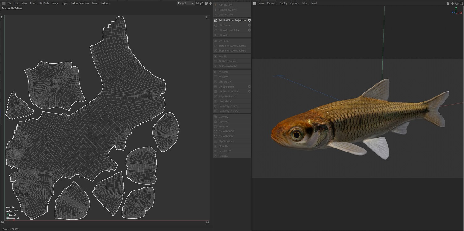 INFO: - Asymmetrical fish 3d model - Textures embedded in blender too - Ready to render in Blender with Cycles/EEVEE - Made in Cinema 4d - Auto UV and Auto topolgy done in cinema 4d - Cinema 4d and blender 3d files are textured linked - 4k Textures, Only Diffuse map - Bump and SSS also used in blender - UV mapped - Best for publication, visualition etc.