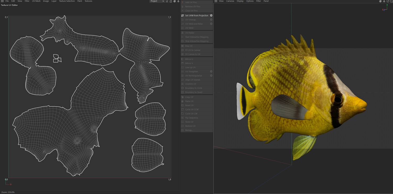 INFO: - Asymmetrical fish 3d model - Textures embedded in blender too - Ready to render in Blender with Cycles/EEVEE - Made in Cinema 4d - Auto UV and Auto topolgy done in cinema 4d - Cinema 4d and blender 3d files are textured linked - 4k Textures, Only Diffuse map - Bump and SSS also used in blender - UV mapped - Best for publication, visualition etc.