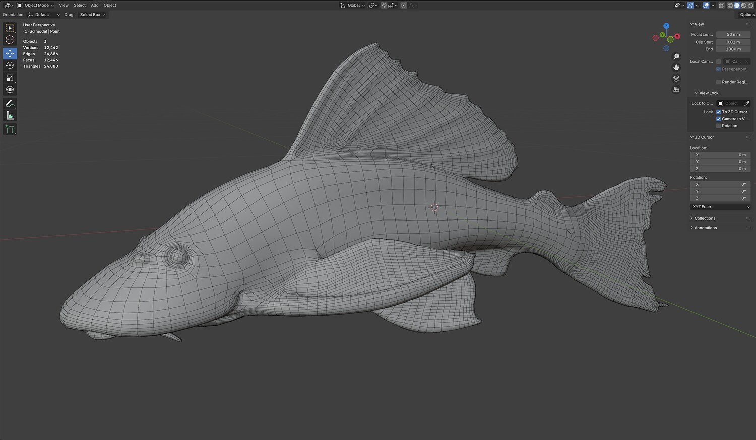 INFO: - Asymmetrical fish 3d model - Textures embedded in blender too - Ready to render in Blender with Cycles/EEVEE - Made in Cinema 4d - Auto UV and Auto topolgy done in cinema 4d - Cinema 4d and blender 3d files are textured linked - 4k Textures, Only Diffuse map - Bump and SSS also used in blender - UV mapped - Best for publication, visualition etc.