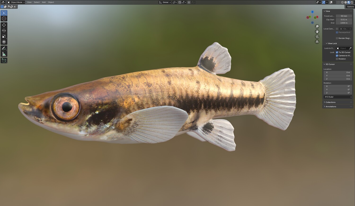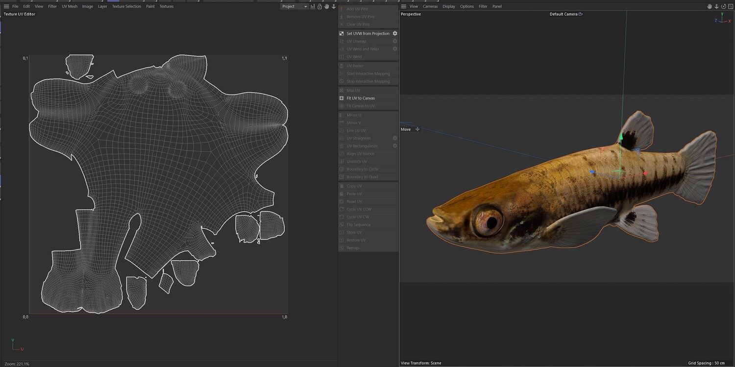 INFO: - Asymmetrical fish 3d model - Textures embedded in blender too - Ready to render in Blender with Cycles/EEVEE - Made in Cinema 4d - Auto UV and Auto topolgy done in cinema 4d - Cinema 4d and blender 3d files are textured linked - 4k Textures, Only Diffuse map - Bump and SSS also used in blender - UV mapped - Best for publication, visualition etc.
