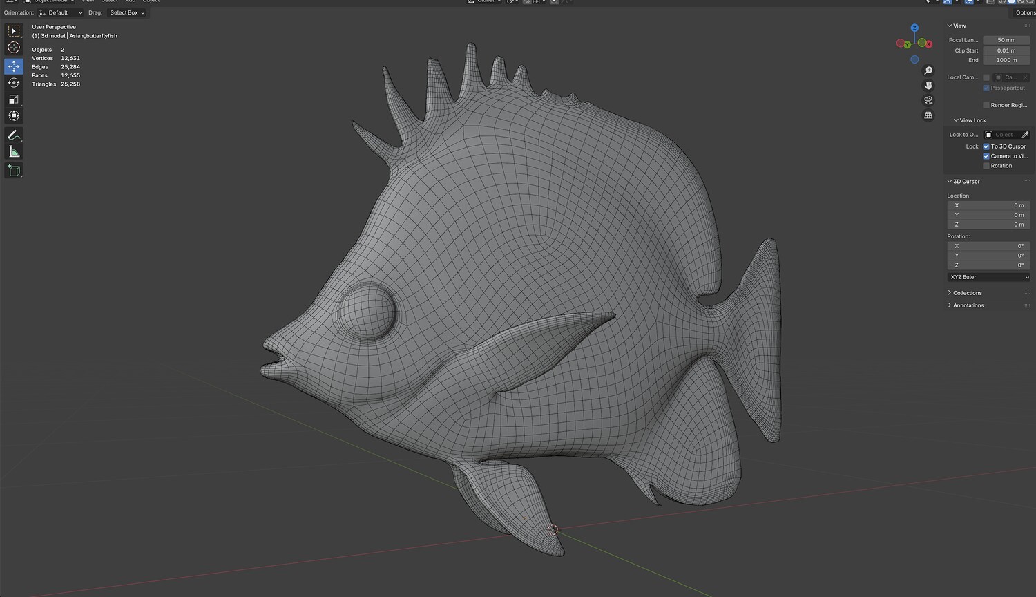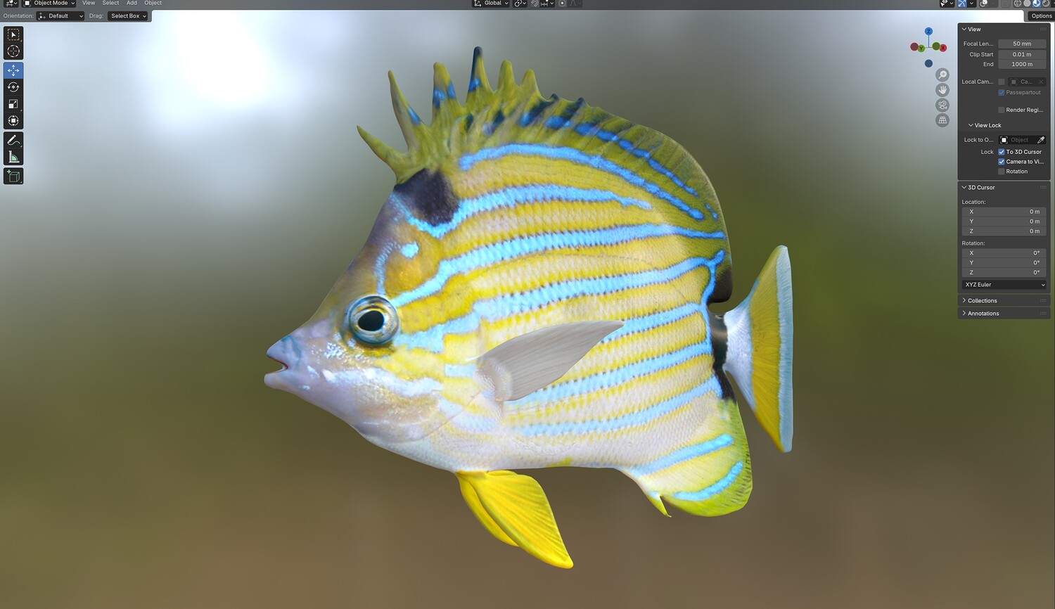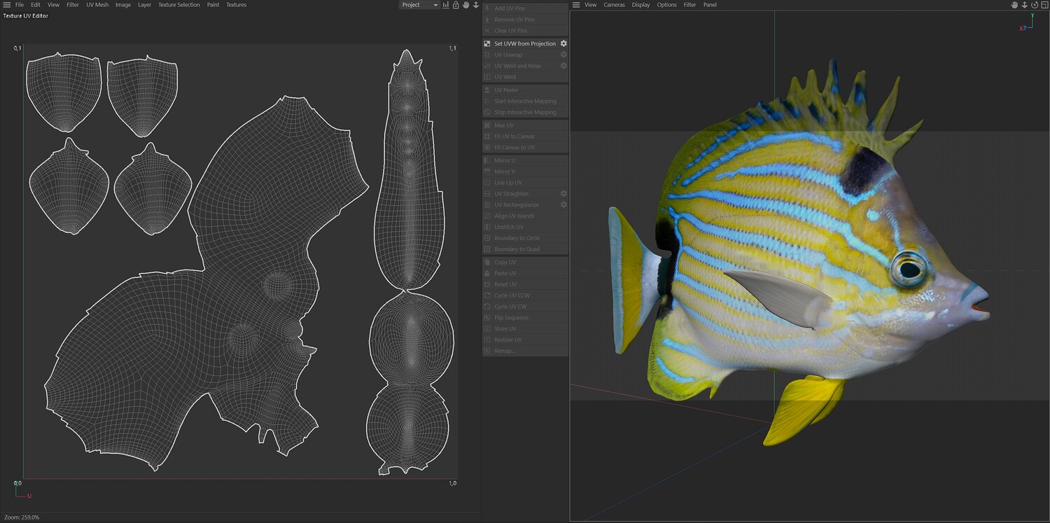 INFO: - Asymmetrical fish 3d model - Textures embedded in blender too - Ready to render in Blender with Cycles/EEVEE - Made in Cinema 4d - Auto UV and Auto topolgy done in cinema 4d - Cinema 4d and blender 3d files are textured linked - 4k Textures, Only Diffuse map - Bump and SSS also used in blender - UV mapped - Best for publication, visualition etc.
