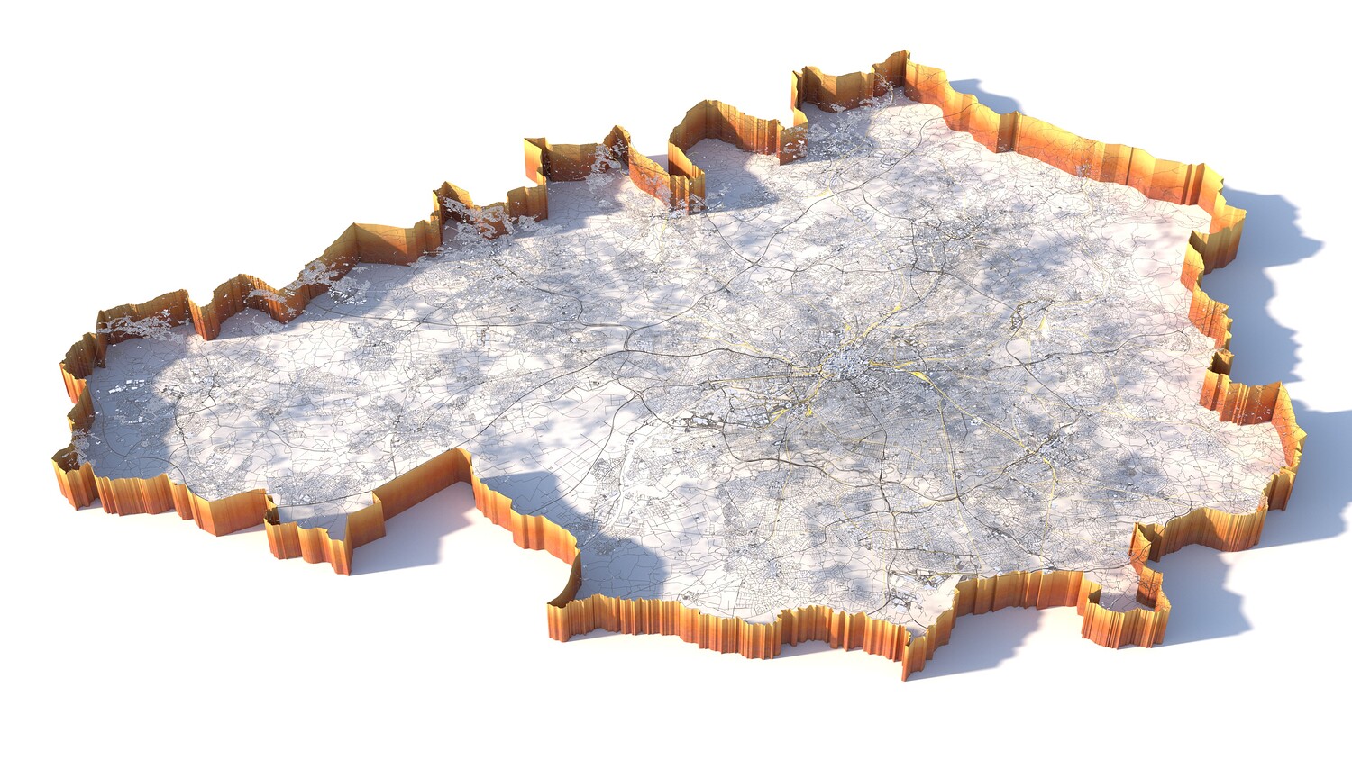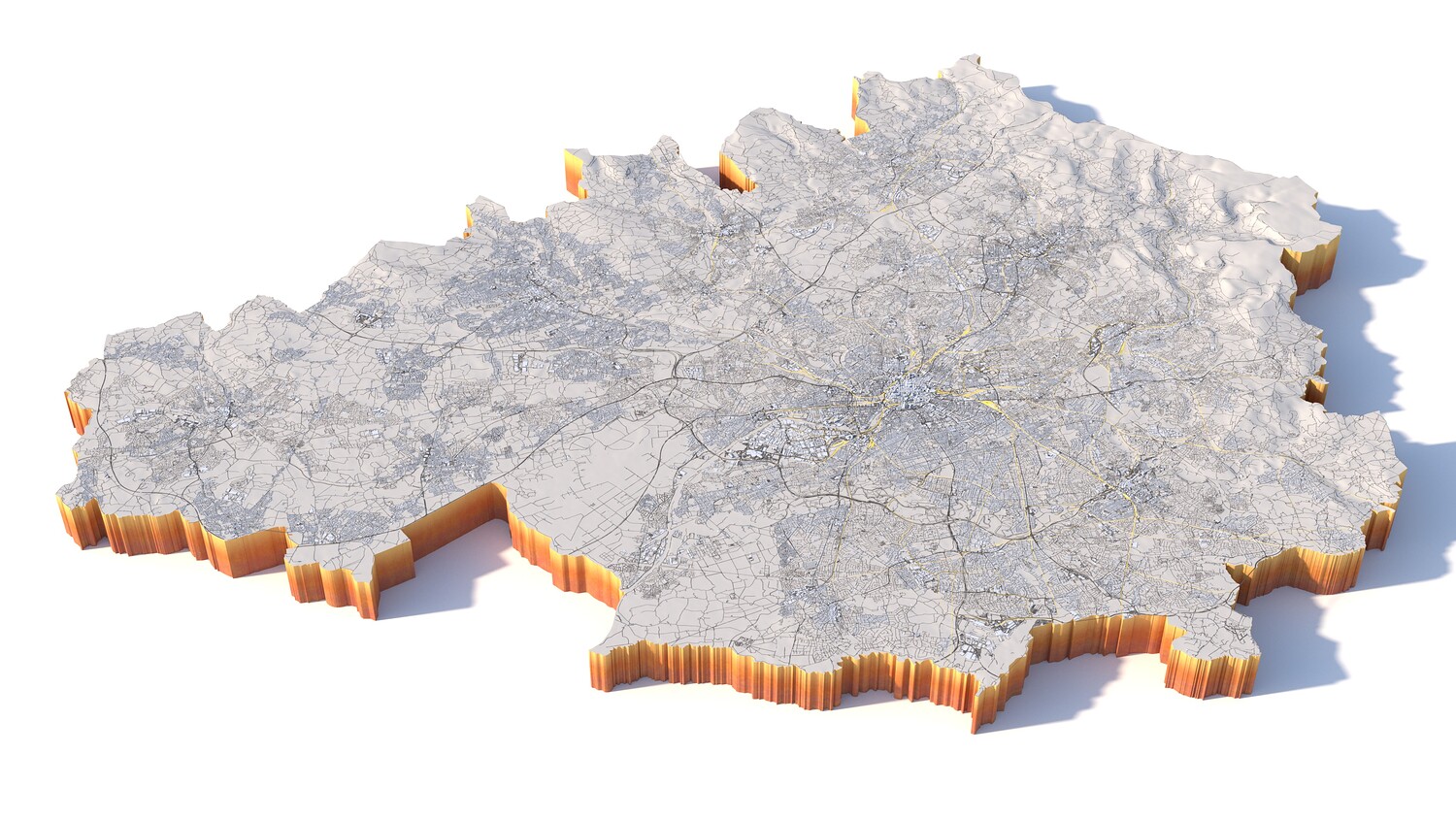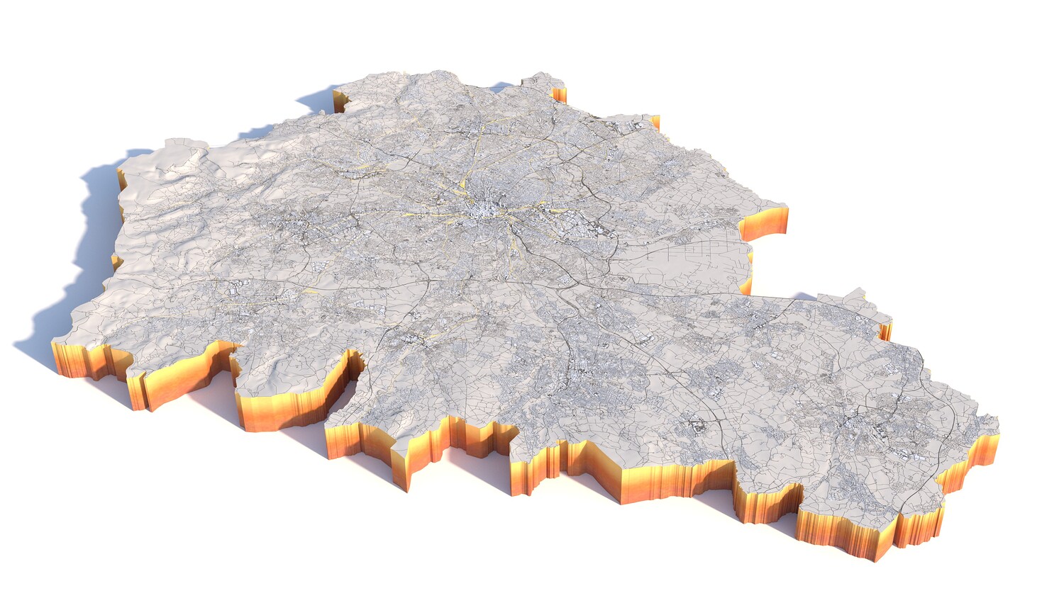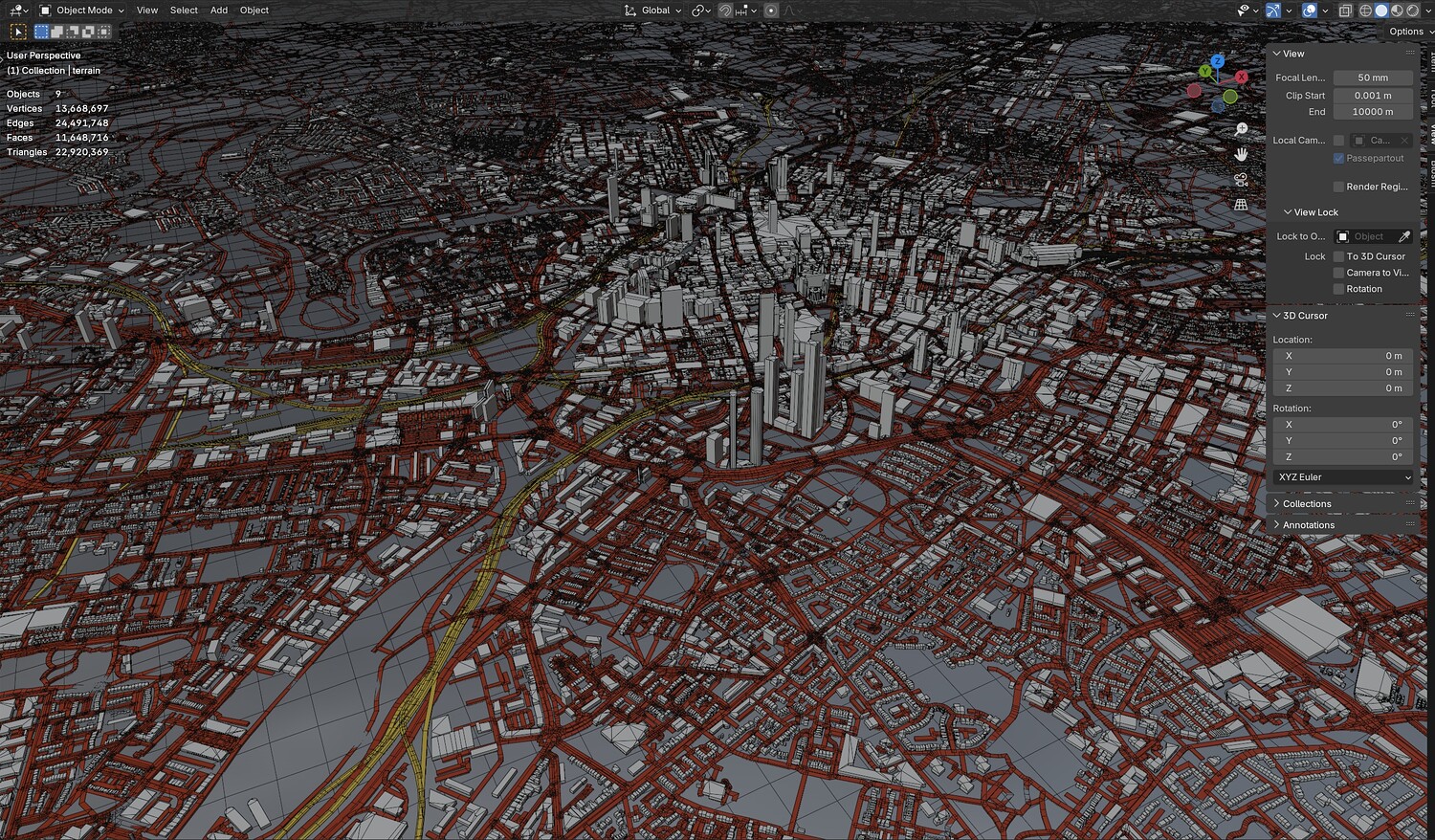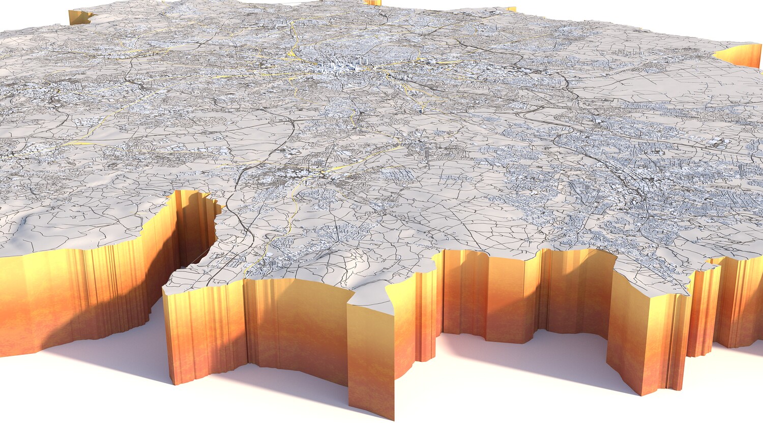 Info: Base satellite texture embedded in blender too Ready to render in Blender with Cycles/EEVEE Terrain, Buildings, Roads are in separated layers Terrain base is high poly Strata material is blender nodes No Plugins used UV mapped is only terrain Royalty free model 3D print is not tested, user will have to do at their own Roads/building etc may have artifact due to terrain landscape, can be seen in renders.