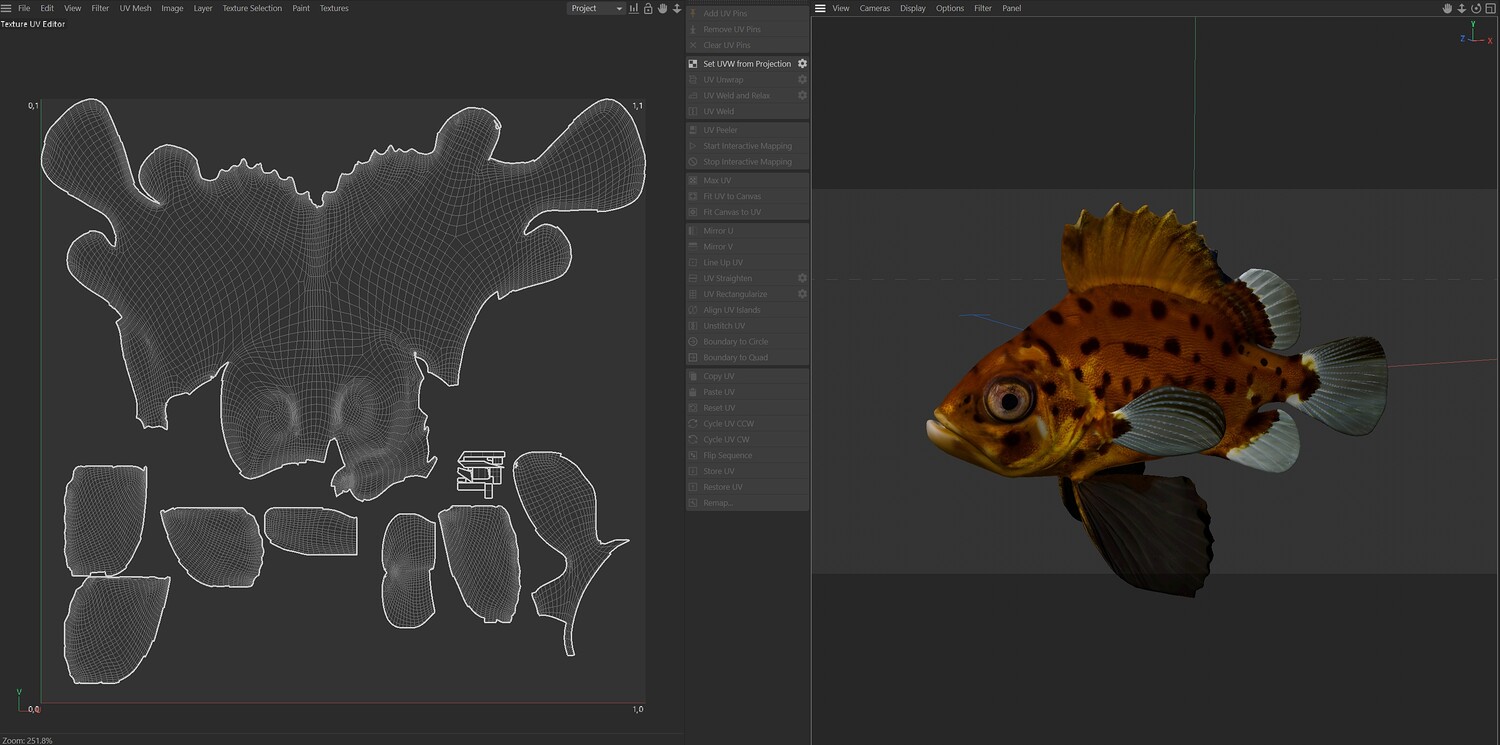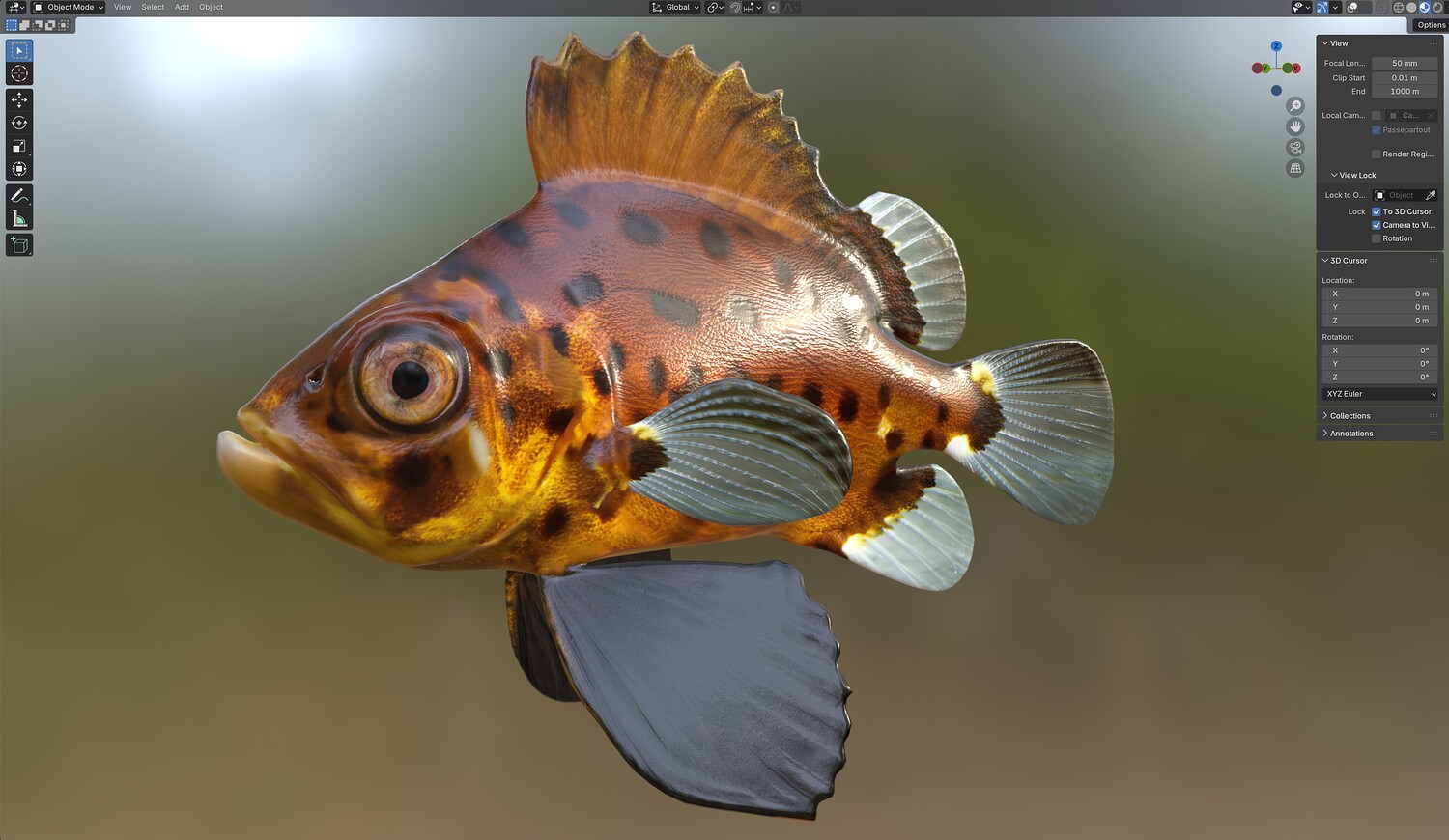 INFO: - Asymmetrical fish 3d model - Textures embedded in blender too - Ready to render in Blender with Cycles/EEVEE - Made in Cinema 4d - Auto UV and Auto topolgy done in cinema 4d - Cinema 4d and blender 3d files are textured linked - 4k Textures, Only Diffuse map - Bump and SSS also used in blender - UV mapped - Best for publication, visualition etc.
