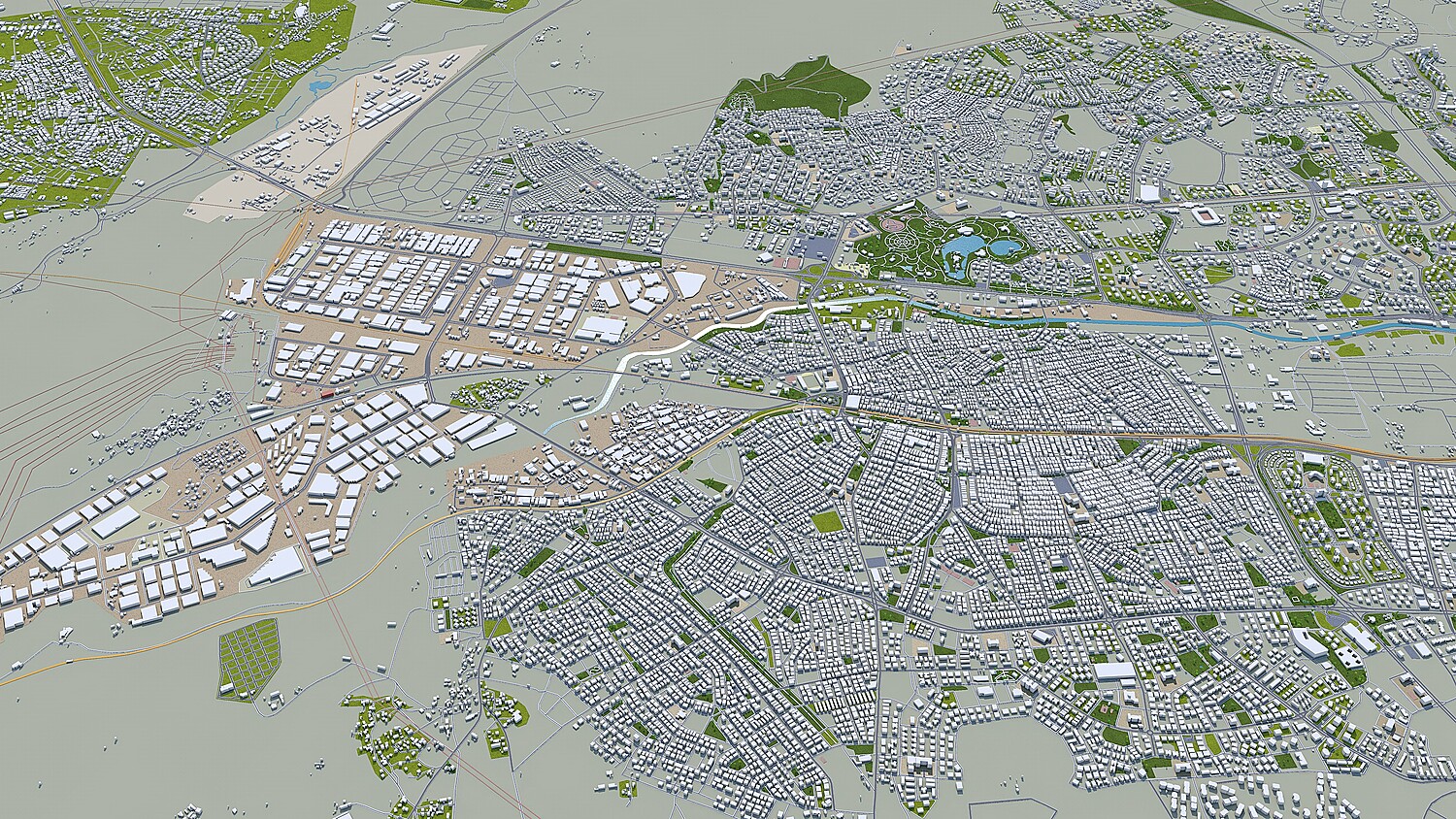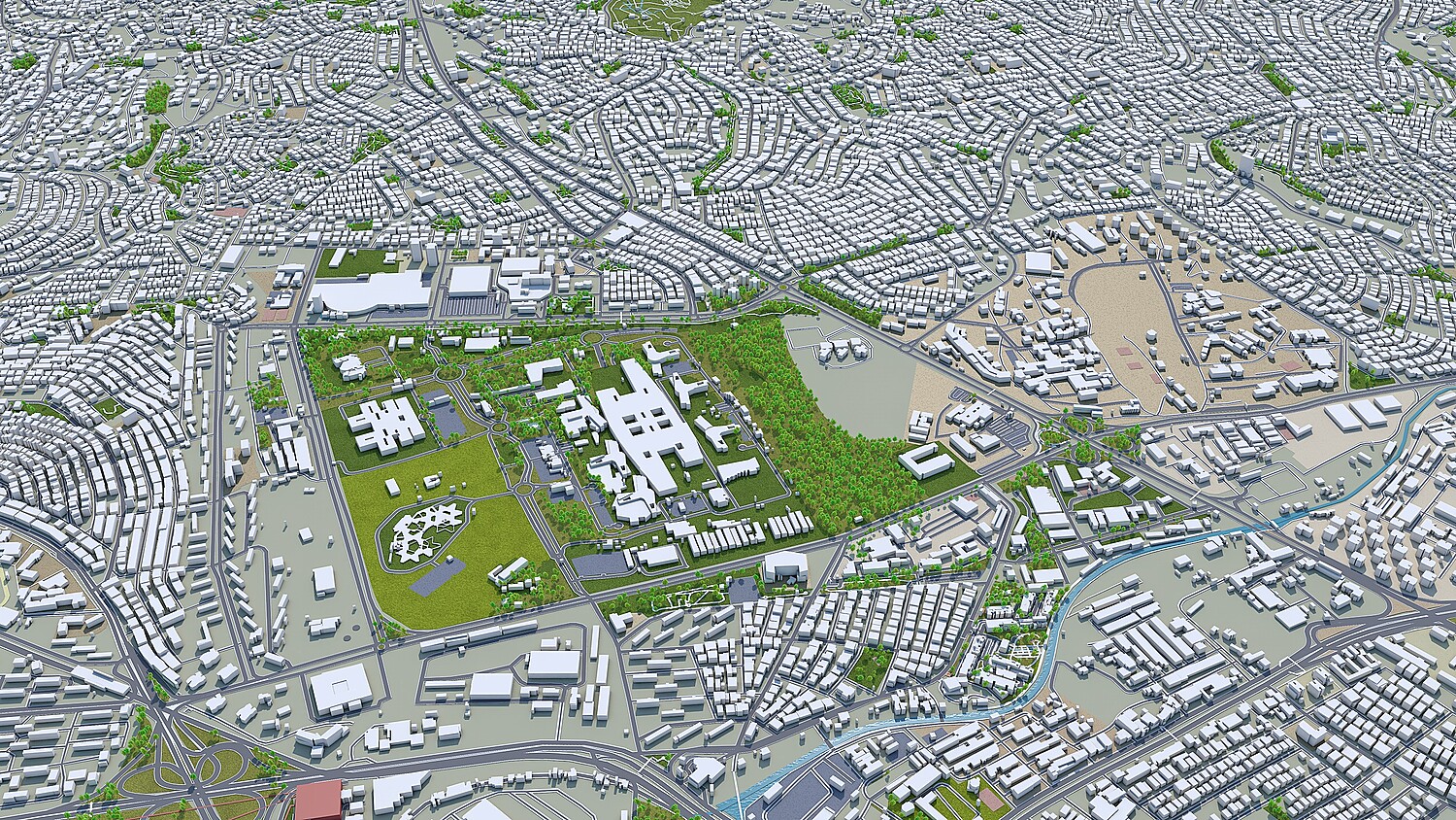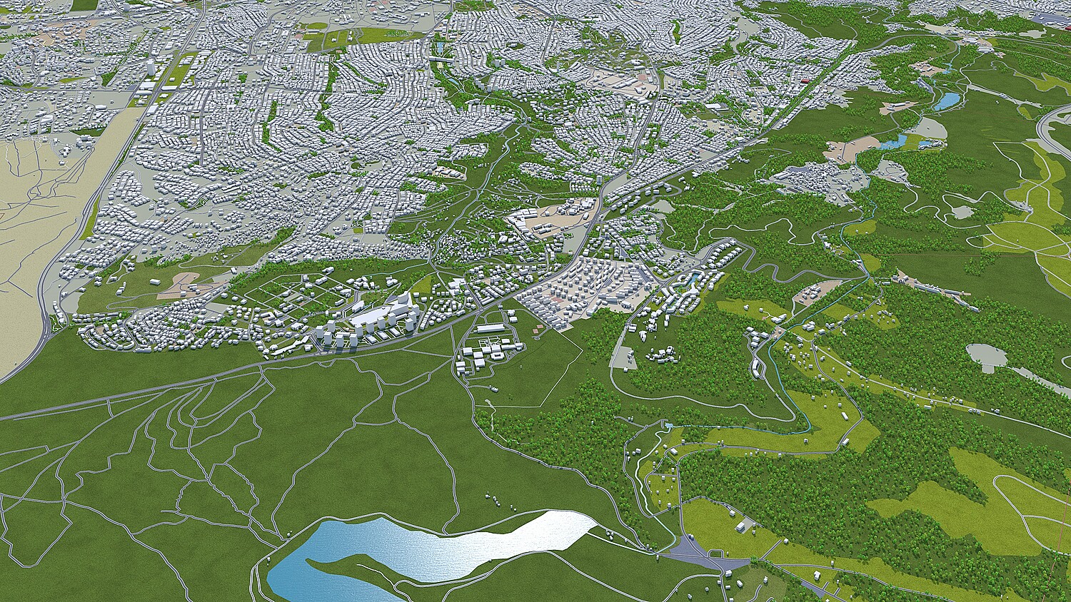Accurate 3D city model and its surrounding area based on GIS data Year 2022