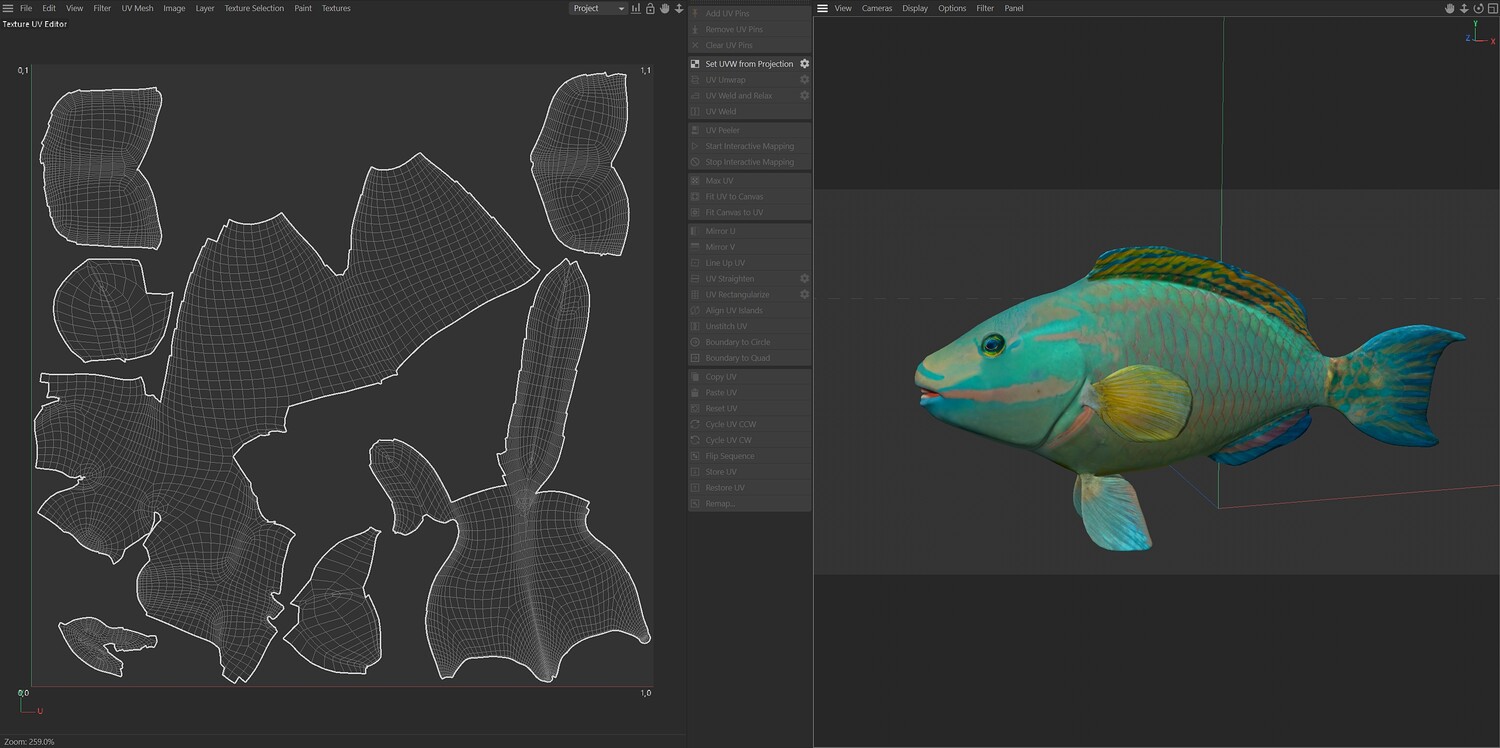 INFO: - Asymmetrical fish 3d model - Textures embedded in blender too - Ready to render in Blender with Cycles/EEVEE - Made in Cinema 4d - Auto UV and Auto topolgy done in cinema 4d - Cinema 4d and blender 3d files are textured linked - 4k Textures, Only Diffuse map - Bump and SSS also used in blender - UV mapped - Best for publication, visualition etc.