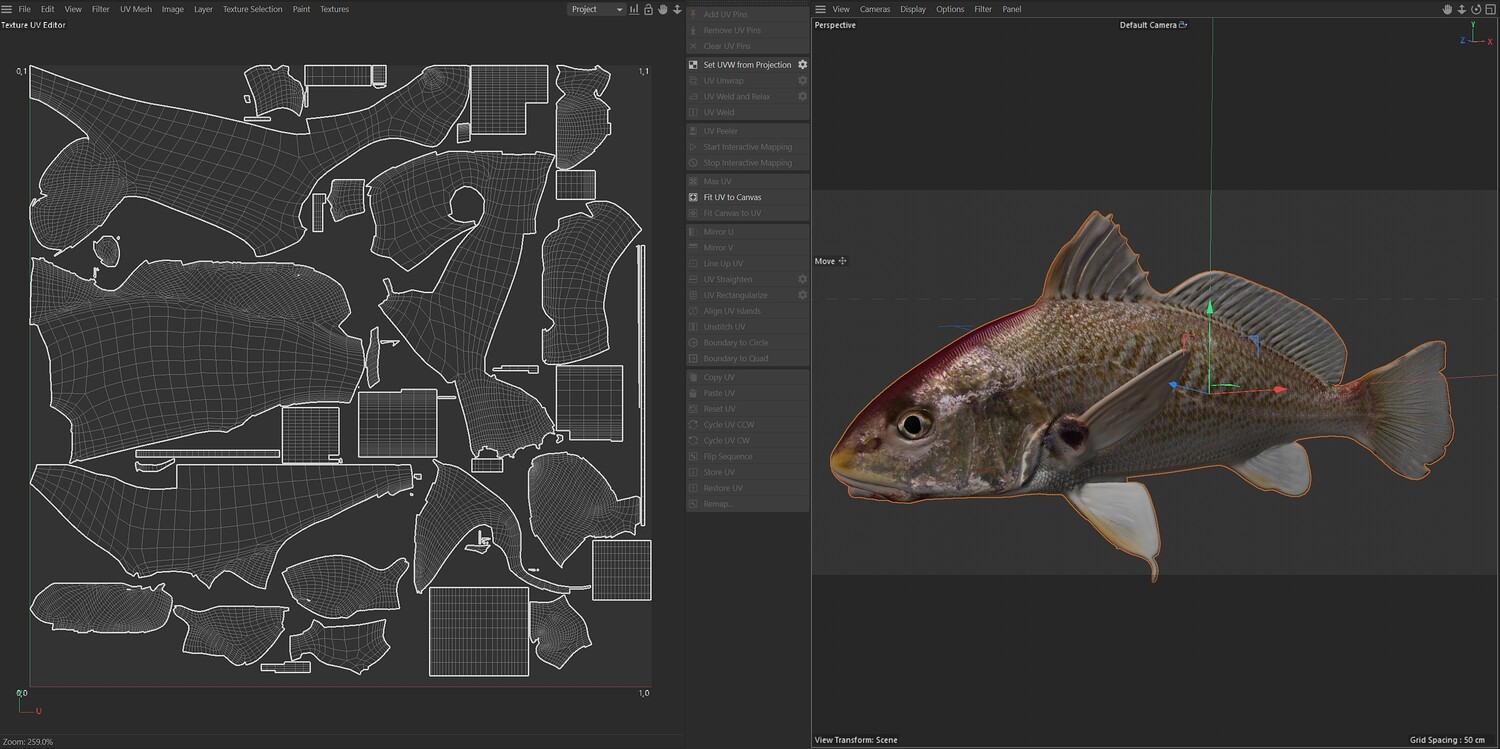 INFO: - Asymmetrical fish 3d model - Textures embedded in blender too - Ready to render in Blender with Cycles/EEVEE - Made in Cinema 4d - Auto UV and Auto topolgy done in cinema 4d - Cinema 4d and blender 3d files are textured linked - 4k Textures, Only Diffuse map - Bump and SSS also used in blender - UV mapped - Best for publication, visualition etc.