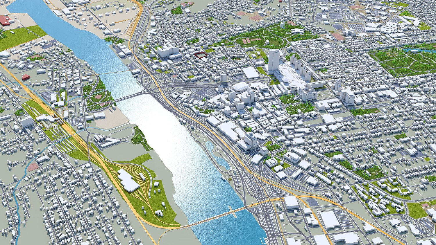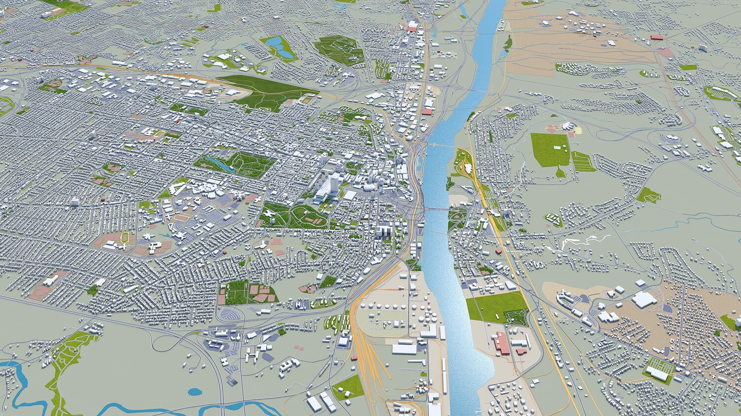 Accurate 3D city model and its surrounding area based on GIS data Year 2022