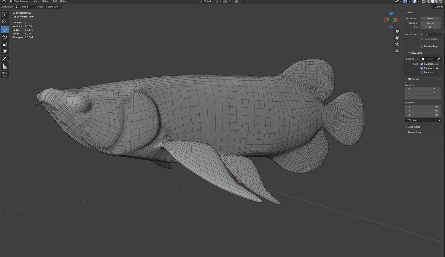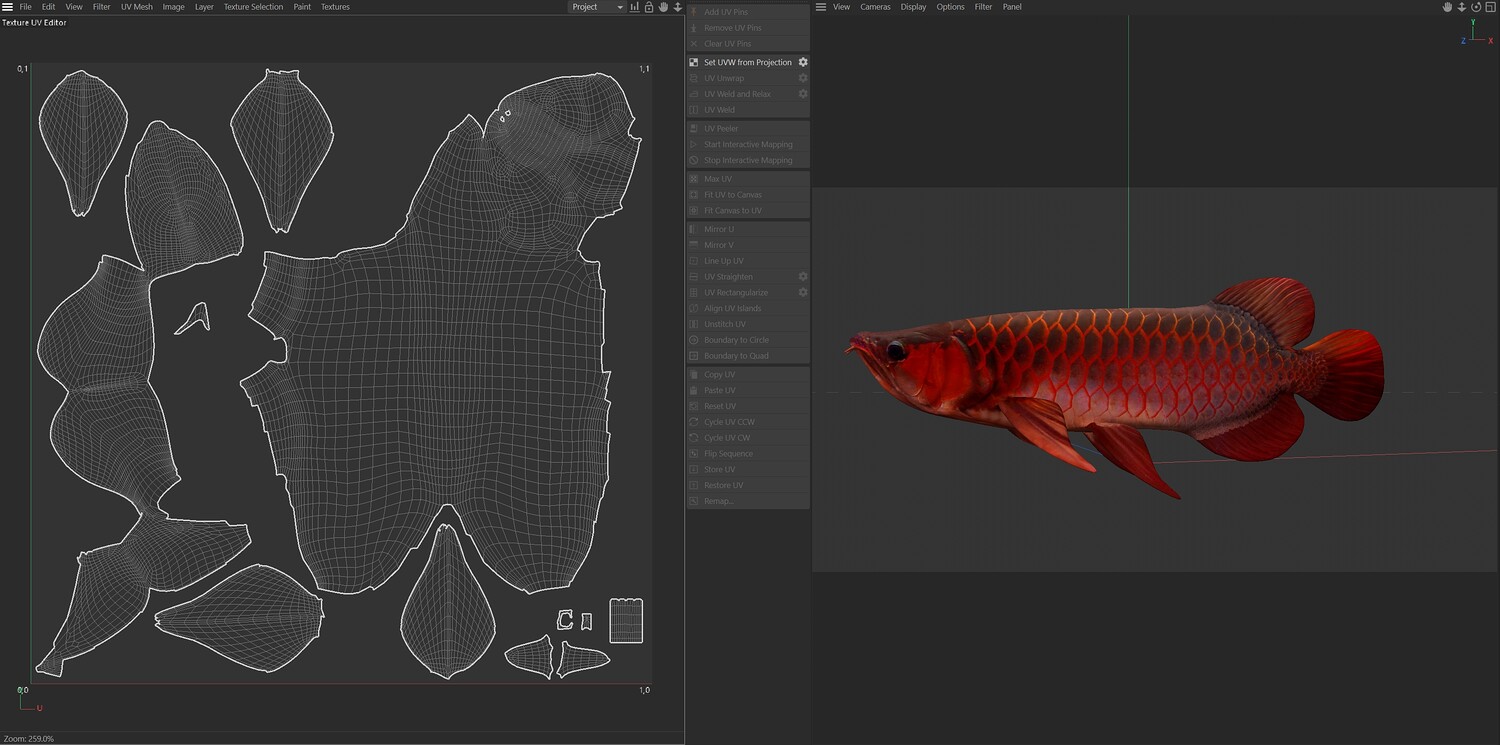 INFO: - Asymmetrical fish 3d model - Textures embedded in blender too - Ready to render in Blender with Cycles/EEVEE - Made in Cinema 4d - Auto UV and Auto topolgy done in cinema 4d - Cinema 4d and blender 3d files are textured linked - 4k Textures, Only Diffuse map - Bump and SSS also used in blender - UV mapped - Best for publication, visualition etc.