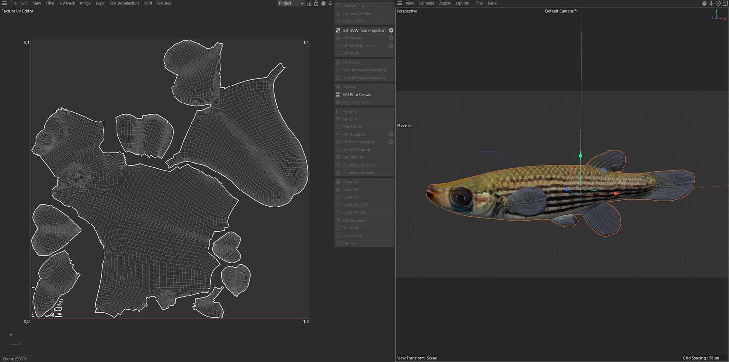 INFO: - Asymmetrical fish 3d model - Textures embedded in blender too - Ready to render in Blender with Cycles/EEVEE - Made in Cinema 4d - Auto UV and Auto topolgy done in cinema 4d - Cinema 4d and blender 3d files are textured linked - 4k Textures, Only Diffuse map - Bump and SSS also used in blender - UV mapped - Best for publication, visualition etc.