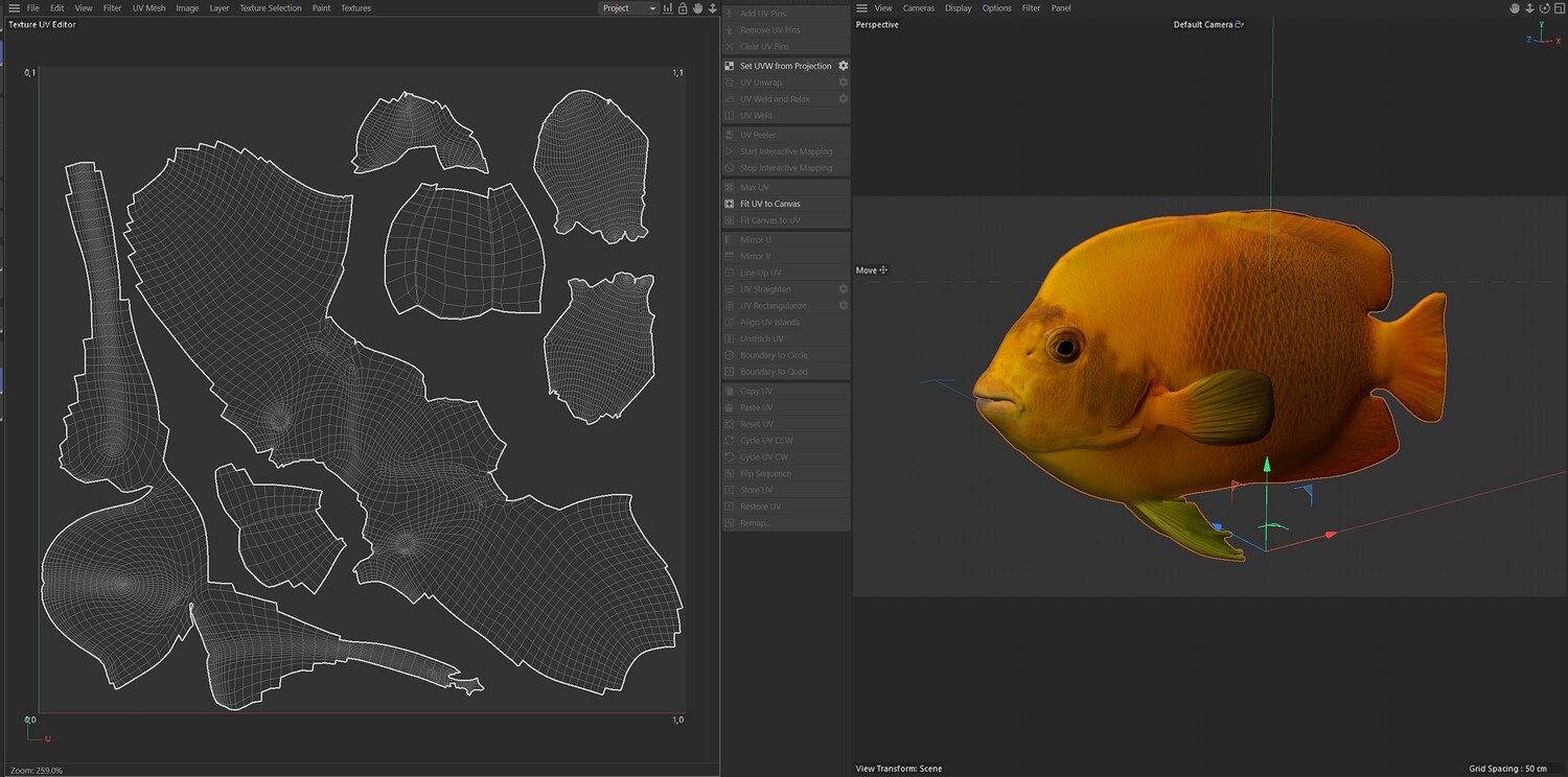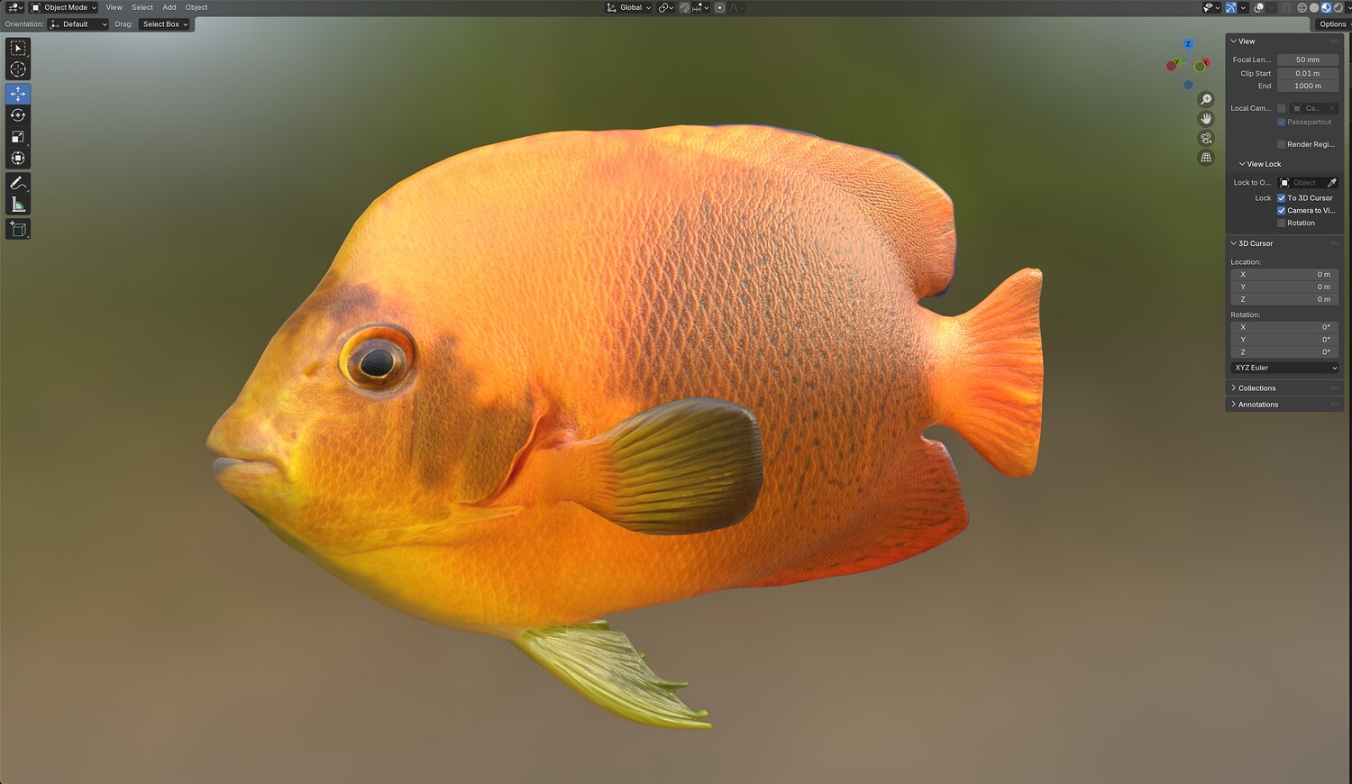 INFO: - Asymmetrical fish 3d model - Textures embedded in blender too - Ready to render in Blender with Cycles/EEVEE - Made in Cinema 4d - Auto UV and Auto topolgy done in cinema 4d - Cinema 4d and blender 3d files are textured linked - 4k Textures, Only Diffuse map - Bump and SSS also used in blender - UV mapped - Best for publication, visualition etc.