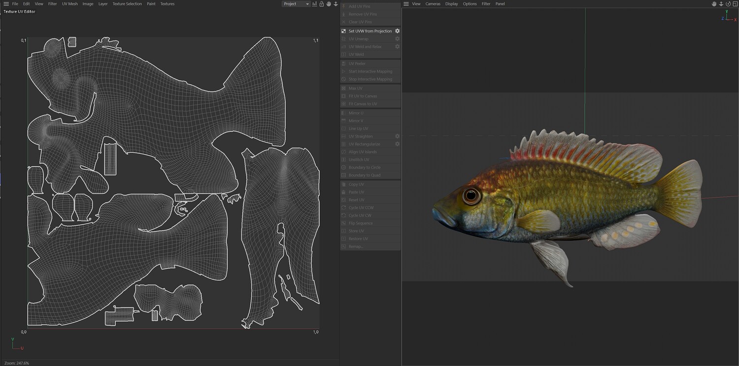 INFO: - Asymmetrical fish 3d model - Textures embedded in blender too - Ready to render in Blender with Cycles/EEVEE - Made in Cinema 4d - Auto UV and Auto topolgy done in cinema 4d - Cinema 4d and blender 3d files are textured linked - 4k Textures, Only Diffuse map - Bump and SSS also used in blender - UV mapped - Best for publication, visualition etc.