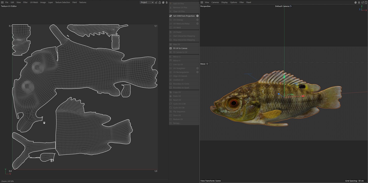 INFO: - Asymmetrical fish 3d model - Textures embedded in blender too - Ready to render in Blender with Cycles/EEVEE - Made in Cinema 4d - Auto UV and Auto topolgy done in cinema 4d - Cinema 4d and blender 3d files are textured linked - 4k Textures, Only Diffuse map - Bump and SSS also used in blender - UV mapped - Best for publication, visualition etc.