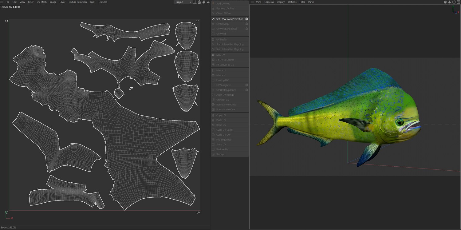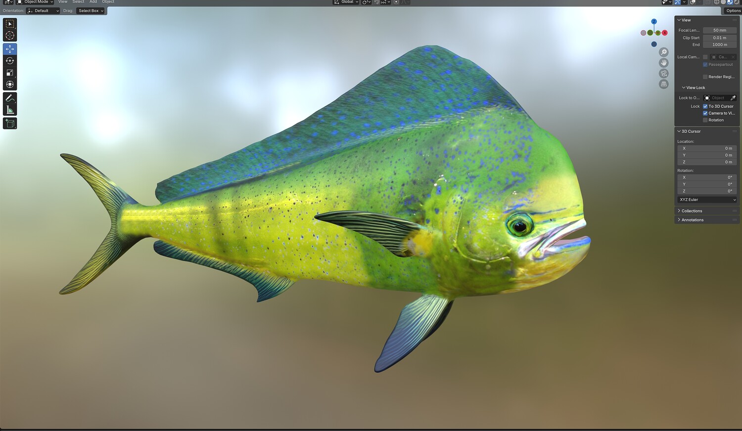 INFO: - Asymmetrical fish 3d model - Textures embedded in blender too - Ready to render in Blender with Cycles/EEVEE - Made in Cinema 4d - Auto UV and Auto topolgy done in cinema 4d - Cinema 4d and blender 3d files are textured linked - 4k Textures, Only Diffuse map - Bump and SSS also used in blender - UV mapped - Best for publication, visualition etc.