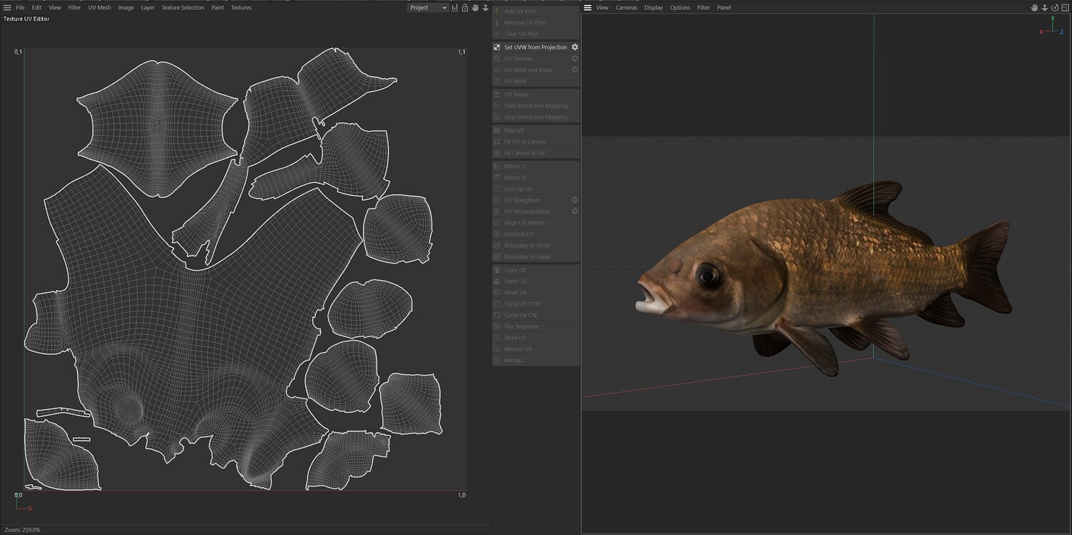 INFO: - Asymmetrical fish 3d model - Textures embedded in blender too - Ready to render in Blender with Cycles/EEVEE - Made in Cinema 4d - Auto UV and Auto topolgy done in cinema 4d - Cinema 4d and blender 3d files are textured linked - 4k Textures, Only Diffuse map - Bump and SSS also used in blender - UV mapped - Best for publication, visualition etc.