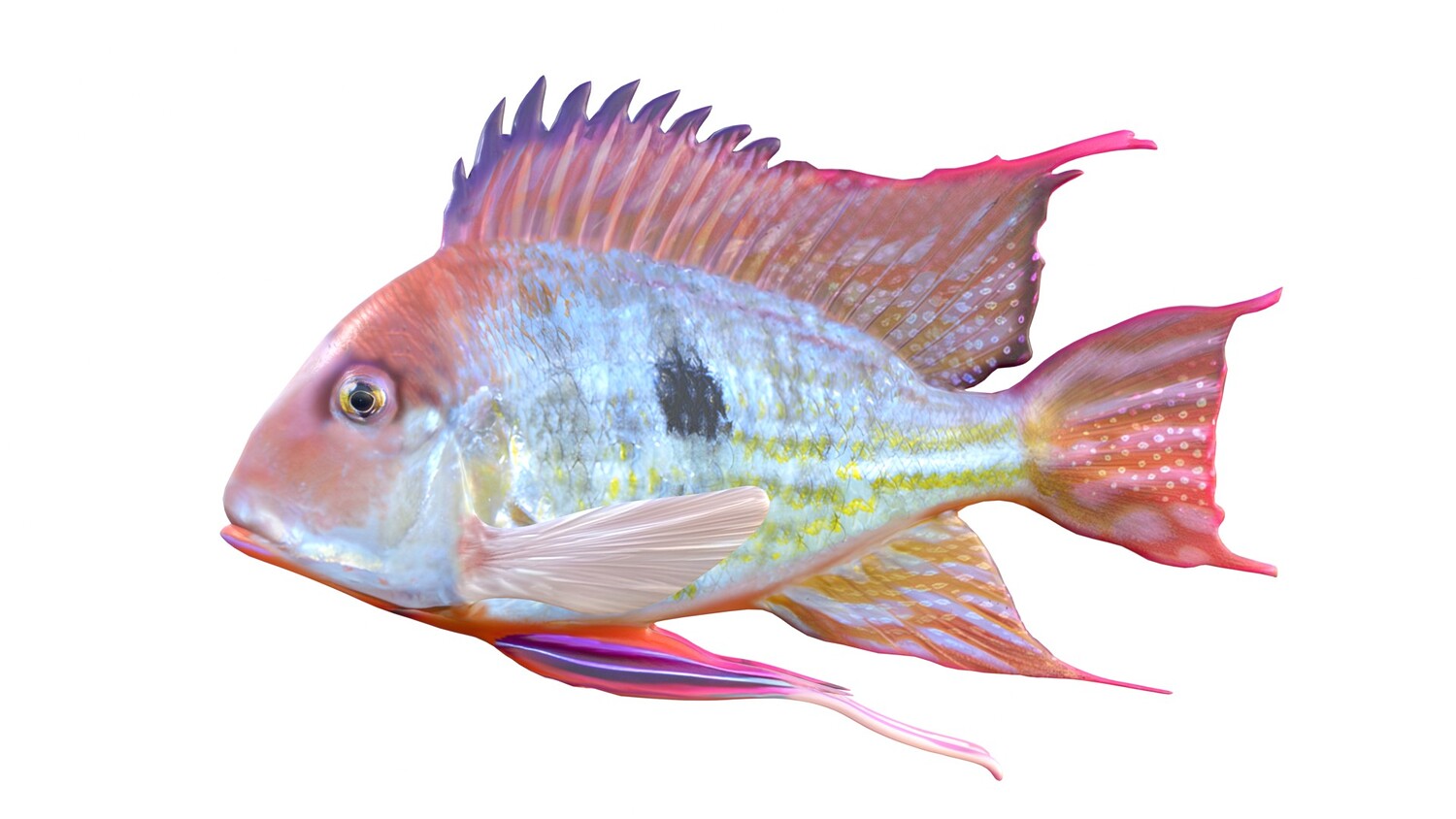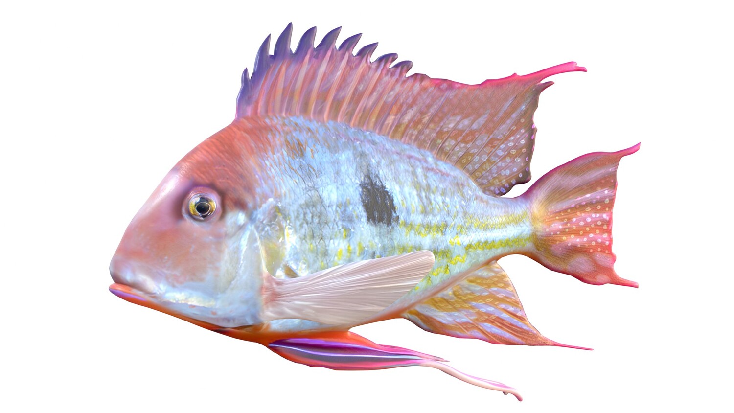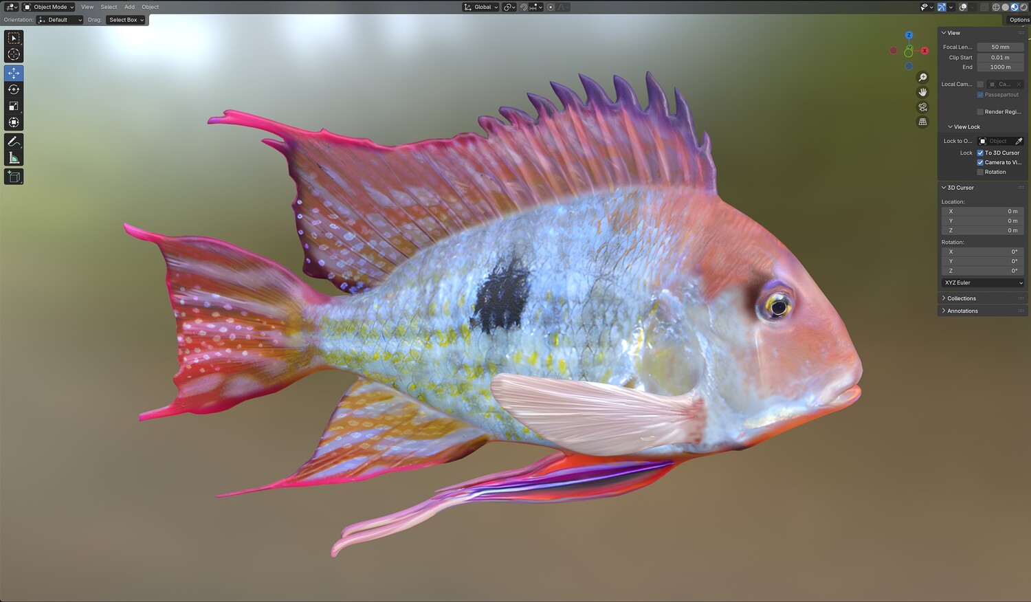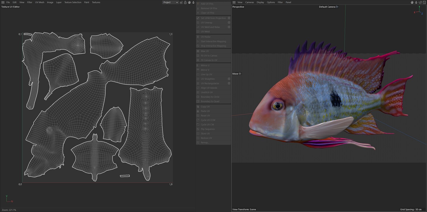 INFO: - Asymmetrical fish 3d model - Textures embedded in blender too - Ready to render in Blender with Cycles/EEVEE - Made in Cinema 4d - Auto UV and Auto topolgy done in cinema 4d - Cinema 4d and blender 3d files are textured linked - 4k Textures, Only Diffuse map - Bump and SSS also used in blender - UV mapped - Best for publication, visualition etc.