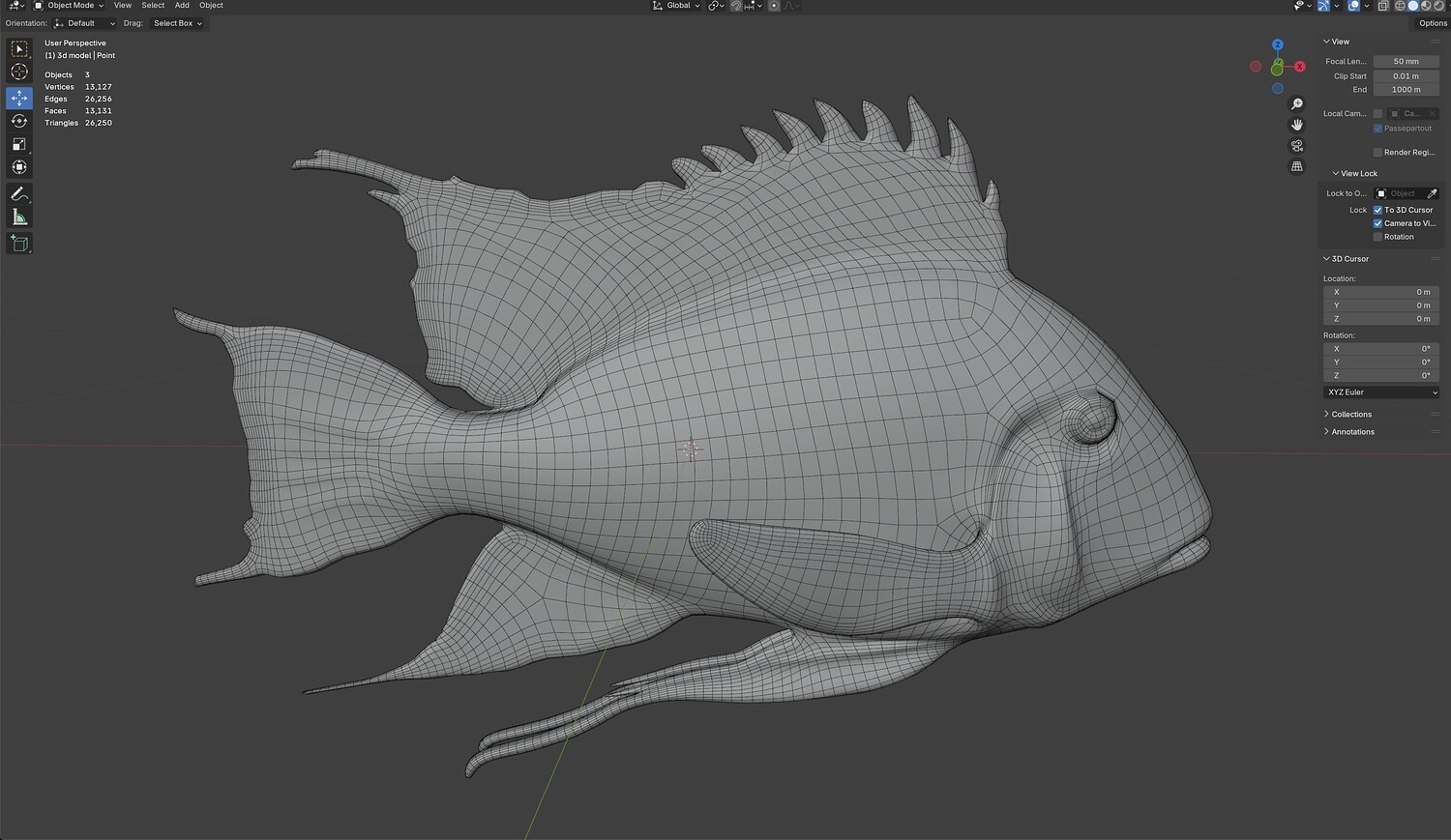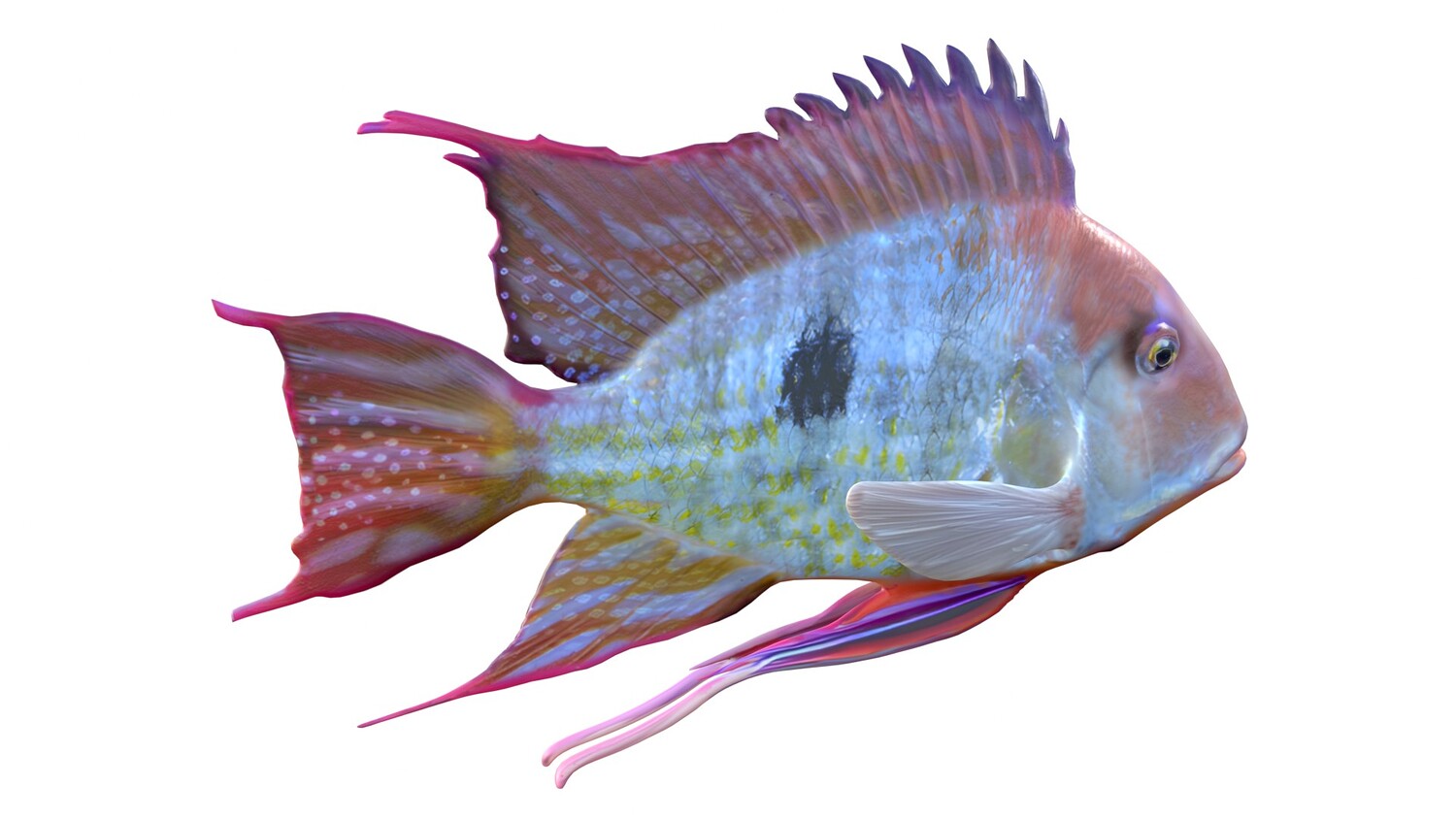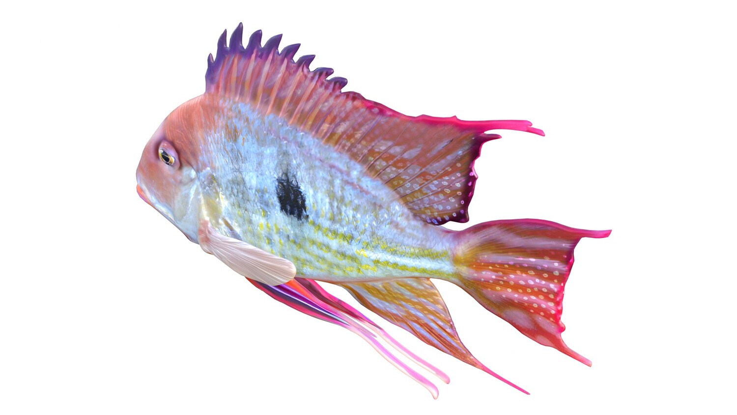 INFO: - Asymmetrical fish 3d model - Textures embedded in blender too - Ready to render in Blender with Cycles/EEVEE - Made in Cinema 4d - Auto UV and Auto topolgy done in cinema 4d - Cinema 4d and blender 3d files are textured linked - 4k Textures, Only Diffuse map - Bump and SSS also used in blender - UV mapped - Best for publication, visualition etc.