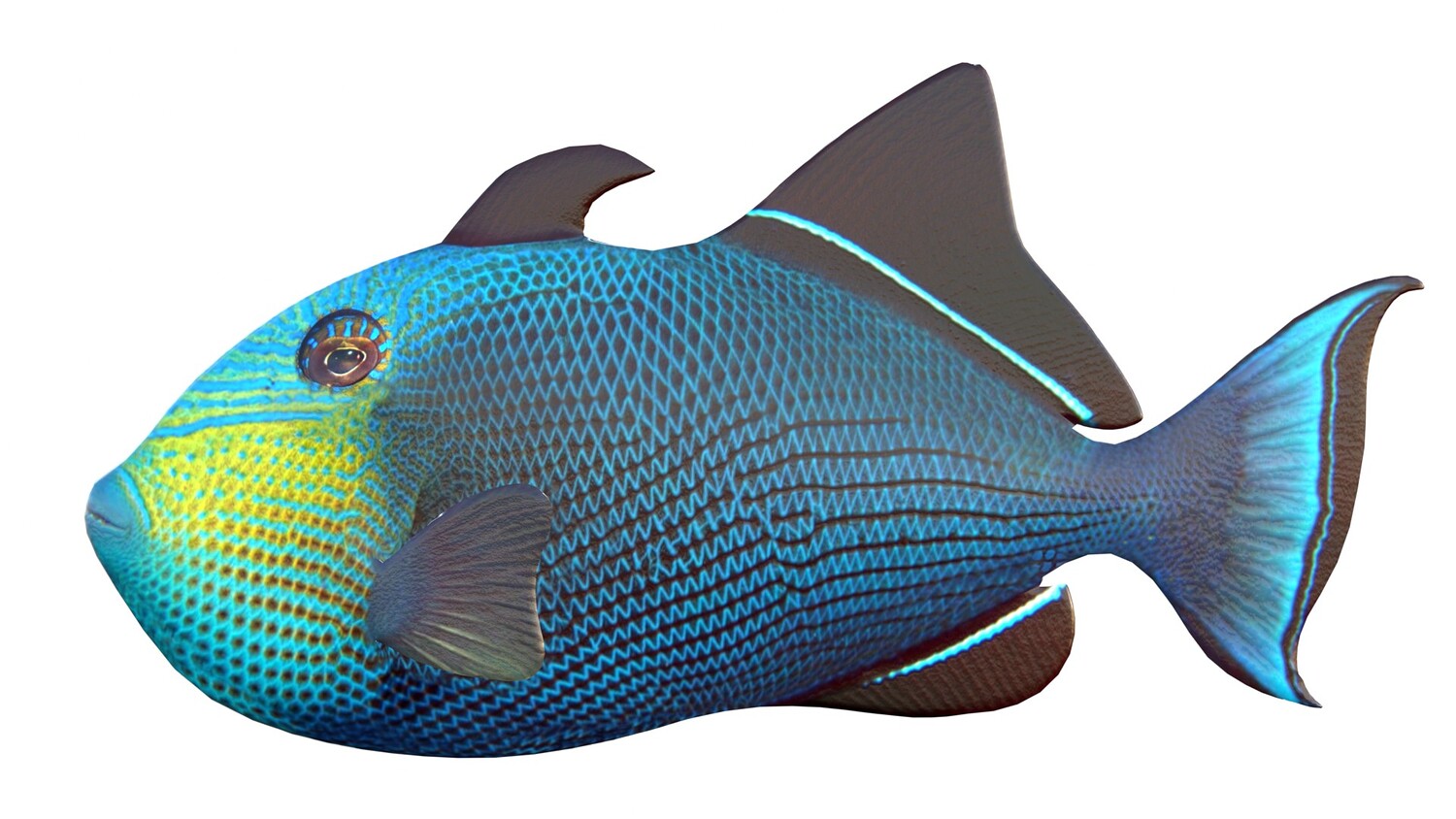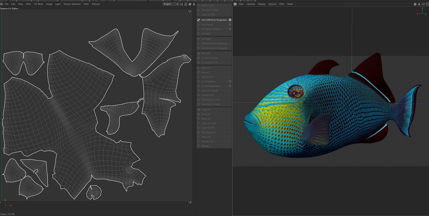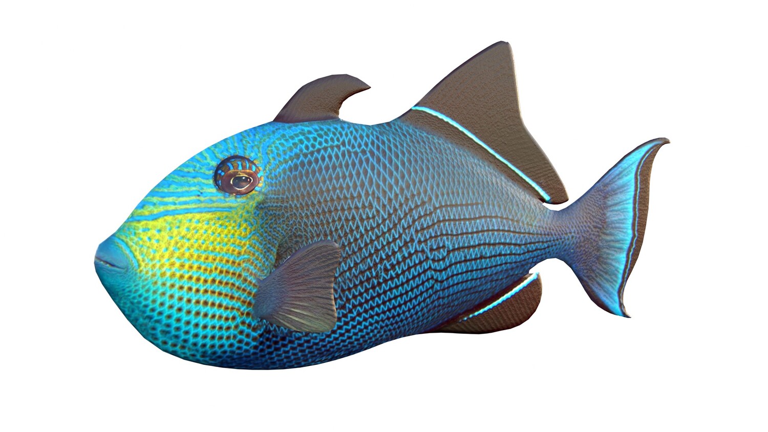INFO: - Asymmetrical fish 3d model - Textures embedded in blender too - Ready to render in Blender with Cycles/EEVEE - Made in Cinema 4d - Auto UV and Auto topolgy done in cinema 4d - Cinema 4d and blender 3d files are textured linked - 4k Textures, Only Diffuse map - Bump and SSS also used in blender - UV mapped - Best for publication, visualition etc.