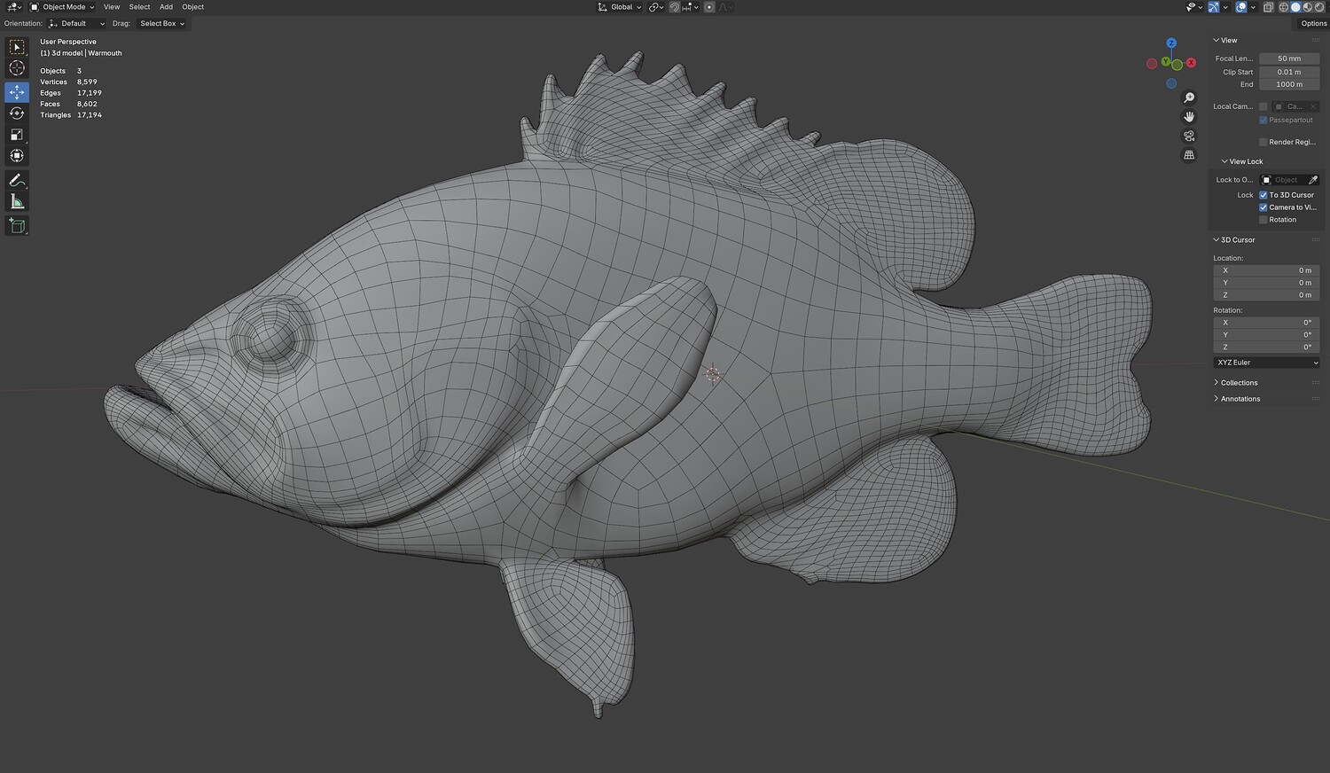 INFO: - Asymmetrical fish 3d model - Textures embedded in blender too - Ready to render in Blender with Cycles/EEVEE - Made in Cinema 4d - Auto UV and Auto topolgy done in cinema 4d - Cinema 4d and blender 3d files are textured linked - 4k Textures, Only Diffuse map - Bump and SSS also used in blender - UV mapped - Best for publication, visualition etc.