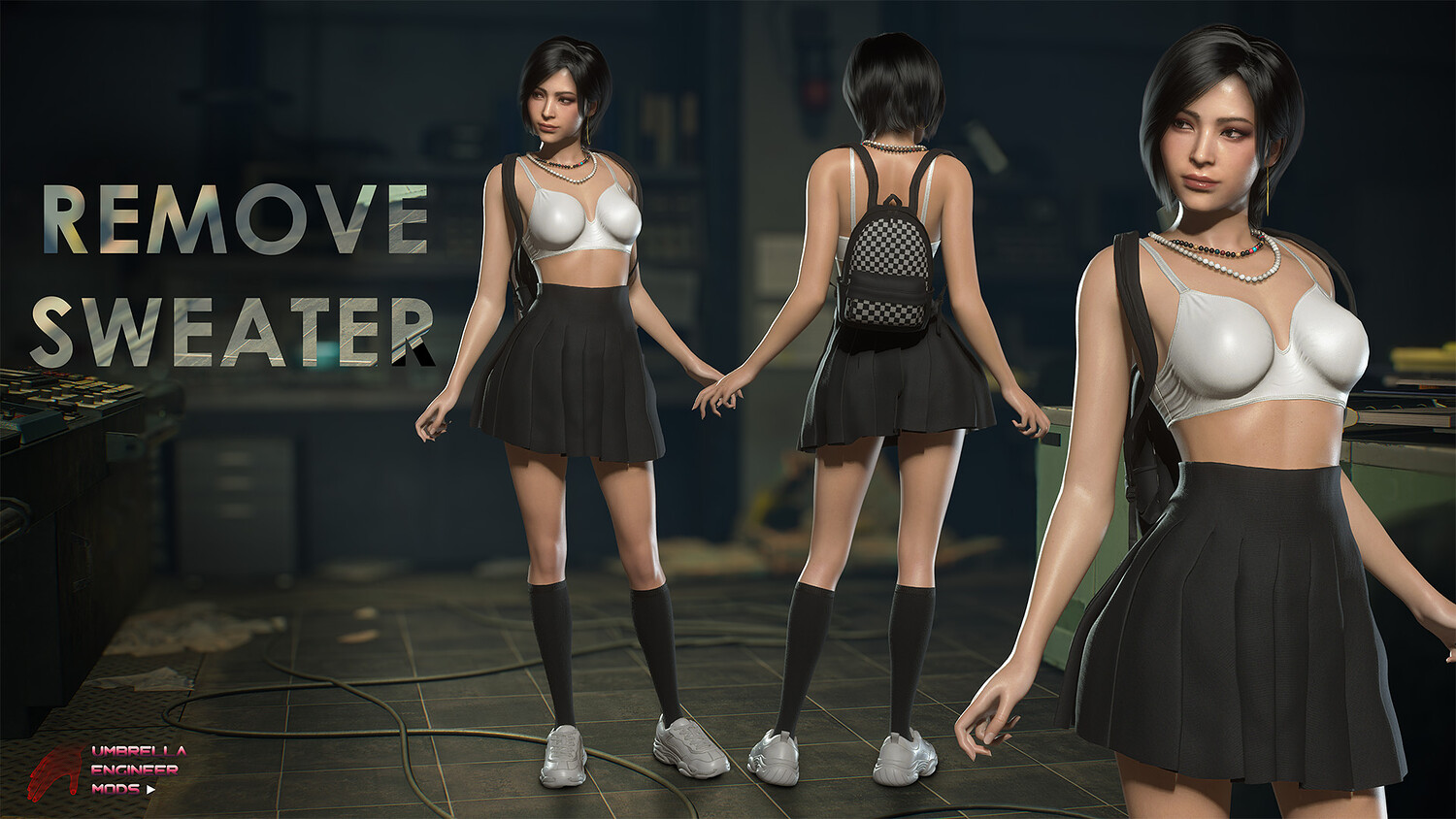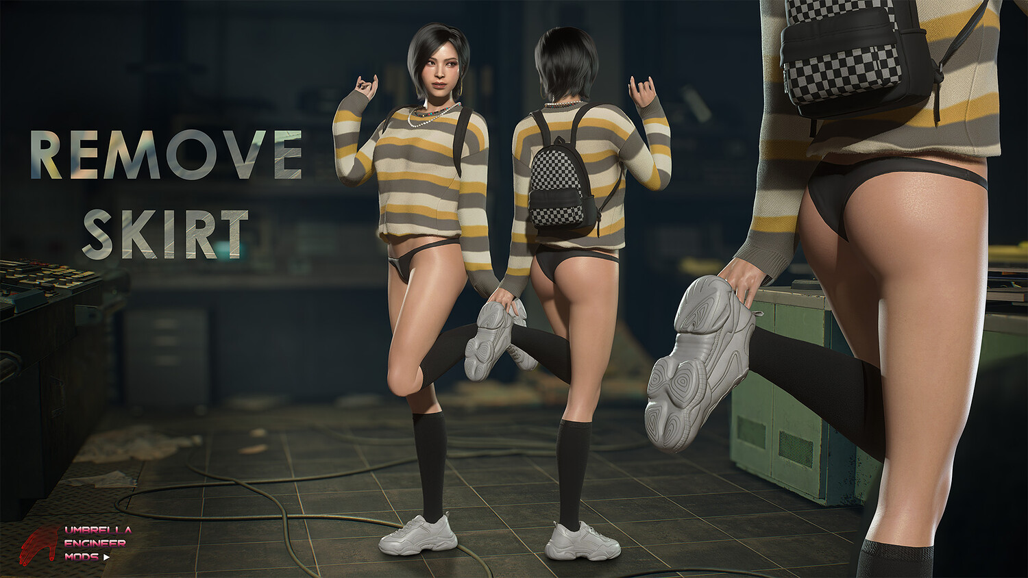 Replaces Base Ada's Outfit mesh, textures. Includes custom breast, glutes and Skirt physics