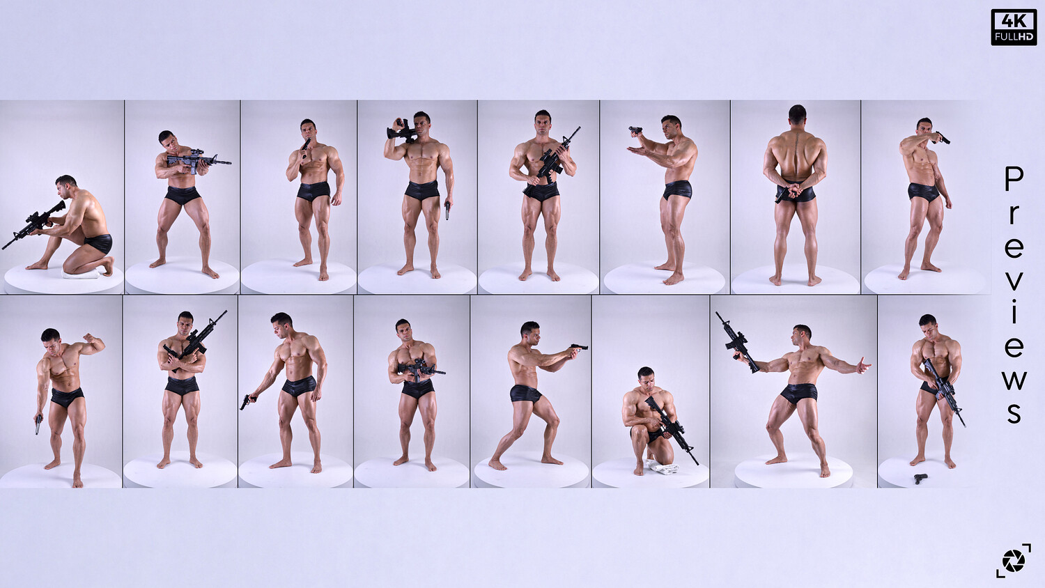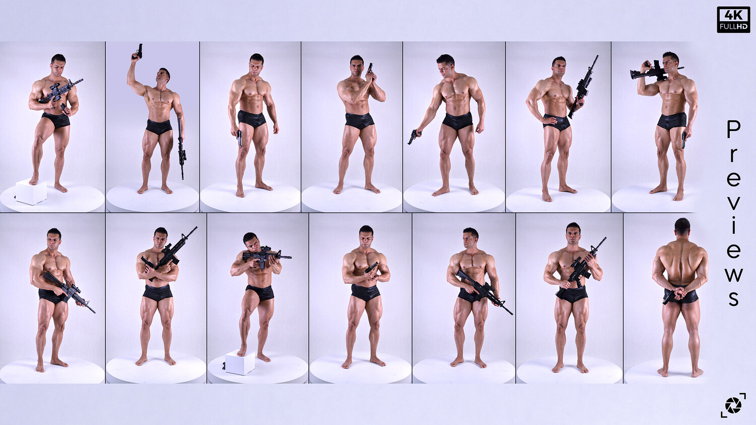 ⚡ Muscles meet weapons. Strength meets precision. From aggressive poses to calm control, this collection offers the perfect visual base for designing soldiers, post-apocalyptic warriors, action heroes, and powerful figures in armed environments.