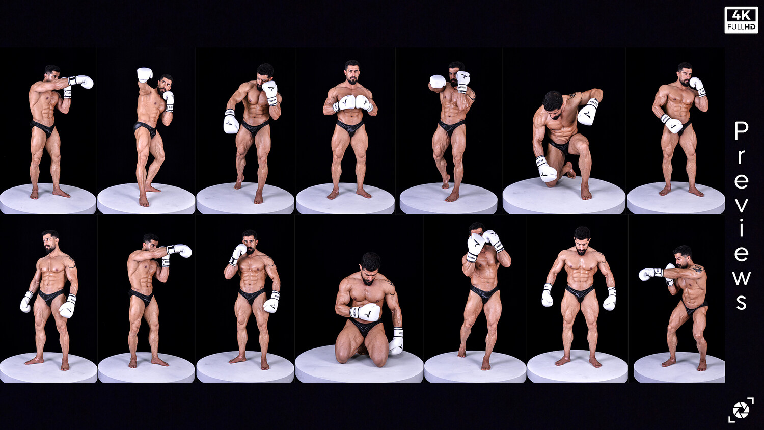 Enter the ring with +616 Box_Hero Reference Pictures — a fierce collection featuring a highly built, action-ready male model in powerful boxing stances, punches, and moments of raw intensity. This pack captures the spirit of a modern-day warrior in motion: focused, fierce, and ready to dominate.