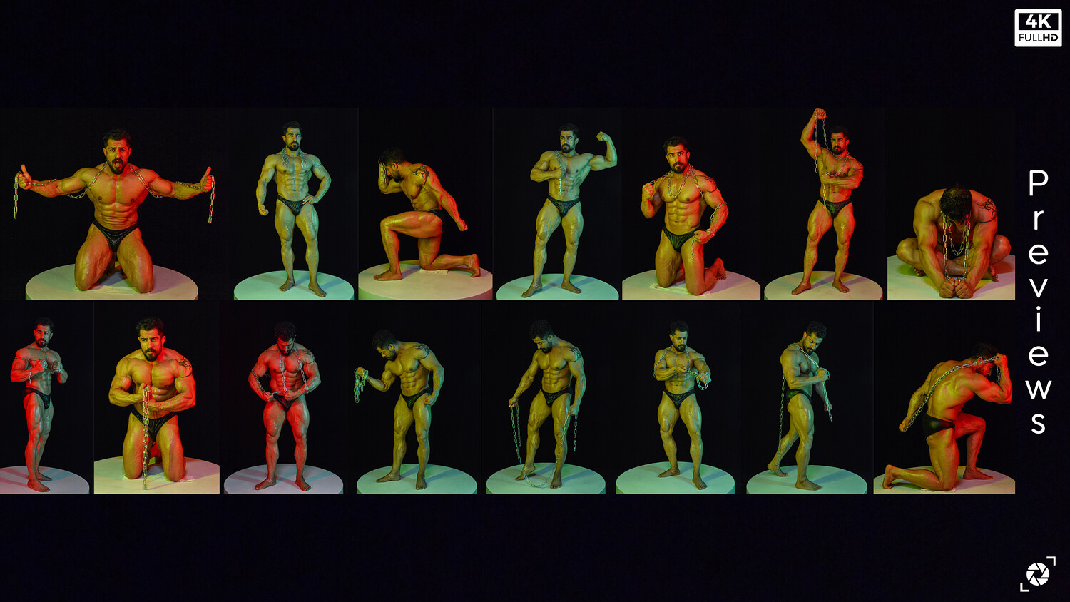 ✔️ 570+ high-resolution reference images ✔️ Chain-based posing with iconic symmetry and tension ✔️ Powerful physique, epic lighting, and bold character presence ✔️ Ideal for character design, fantasy illustration, 3D sculpting & concept art ✔️ Mythic energy meets raw physical realism