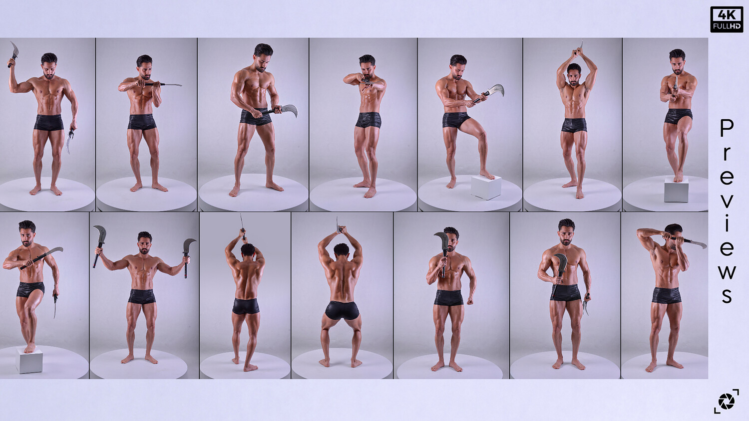 ✔️ 575+ high-resolution reference pictures ✔️ Blade-centric action and motion poses ✔️ Athletic, youthful male model with a defined physique ✔️ Strong shadow-light contrast for powerful silhouettes ✔️ Dynamic angles, ready for 3D modeling, illustration, and painting ✔️ Perfect for game design, animation, and stylized character creation