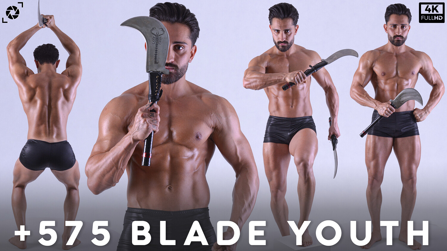 What if youthful strength met the edge of steel? Blade Youth is a high-energy reference pack that fuses athletic grace with raw blade-wielding poses — performed by our young, sculpted model with a powerful cut physique. This collection is packed with expressive stances, dramatic lighting, and warrior-like focus, ideal for character concept artists and figure study professionals.