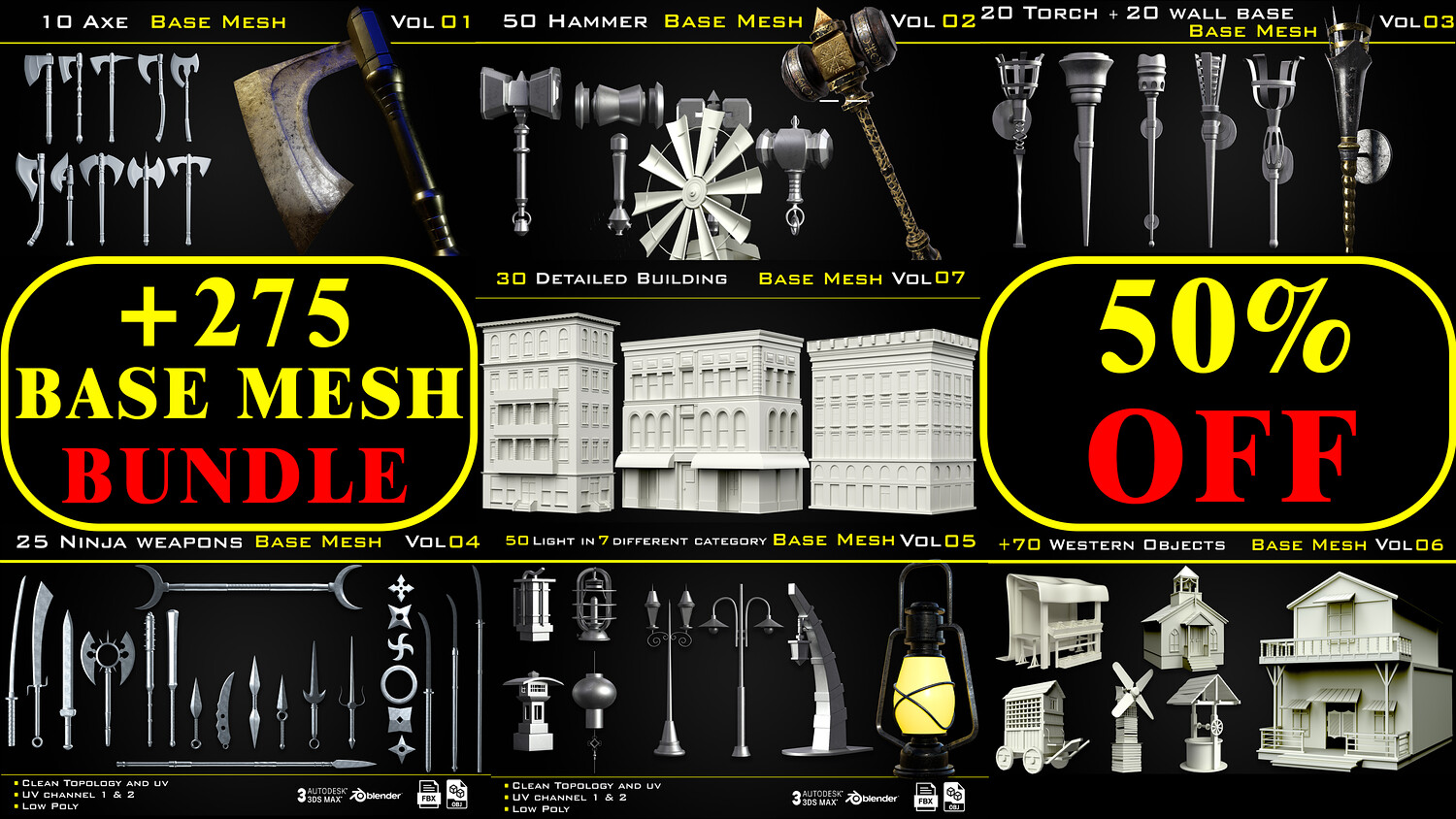 Massive +275 Base Mesh 3D Model Bundle – Now 50% OFF!