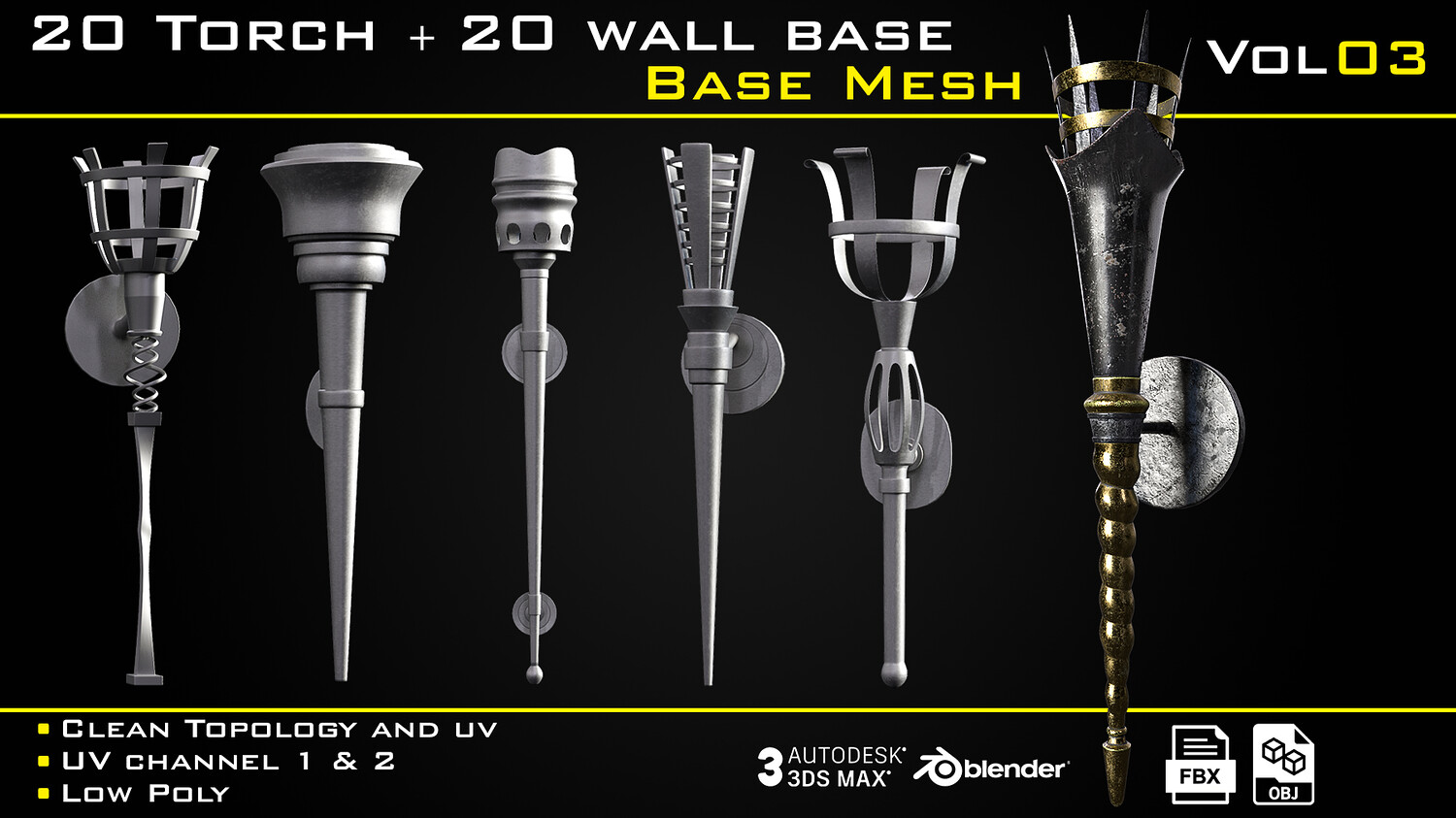 Vol.03 - Medieval Torches + Wall Holders (40 models)