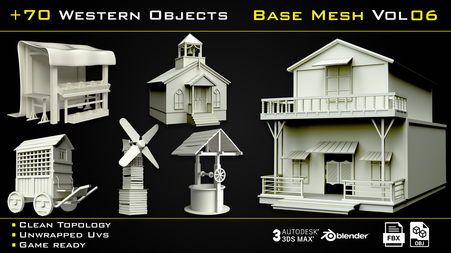 Vol.06 - Stylized Western Props & Buildings (70 models)