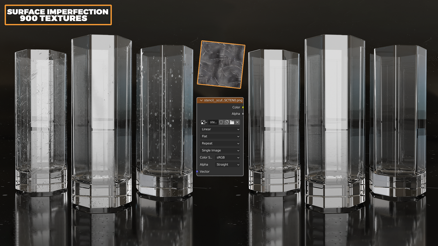 This package offers a collection of over 900 textures in 2k format and 150 assests. Using Asset Browser, you can easily add a suitable texture. By adding a Bump node, you can also make a normal map. Among these textures you will find styles such as prints, dust, scratches, grunge, blur and more. These surface defects are designed to recreate authentic details from the real world, giving significant realism to your 3D scenes. Youtube: https://www.youtube.com/watch?v=JR0wNNwoVAE