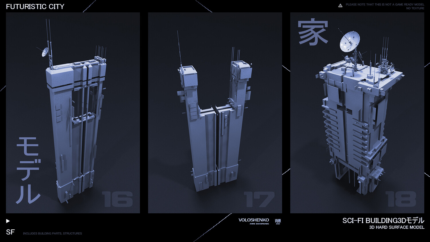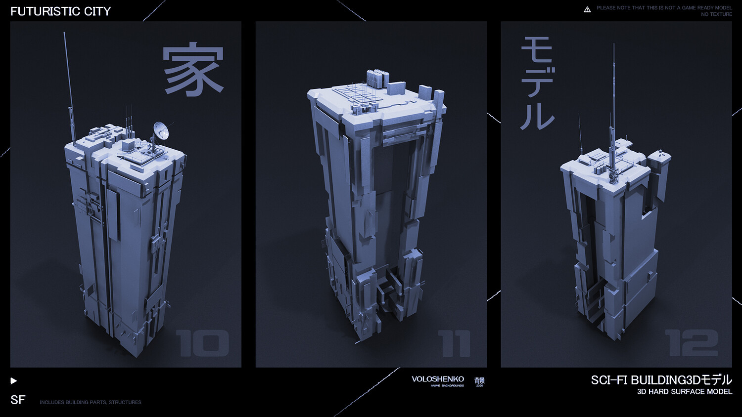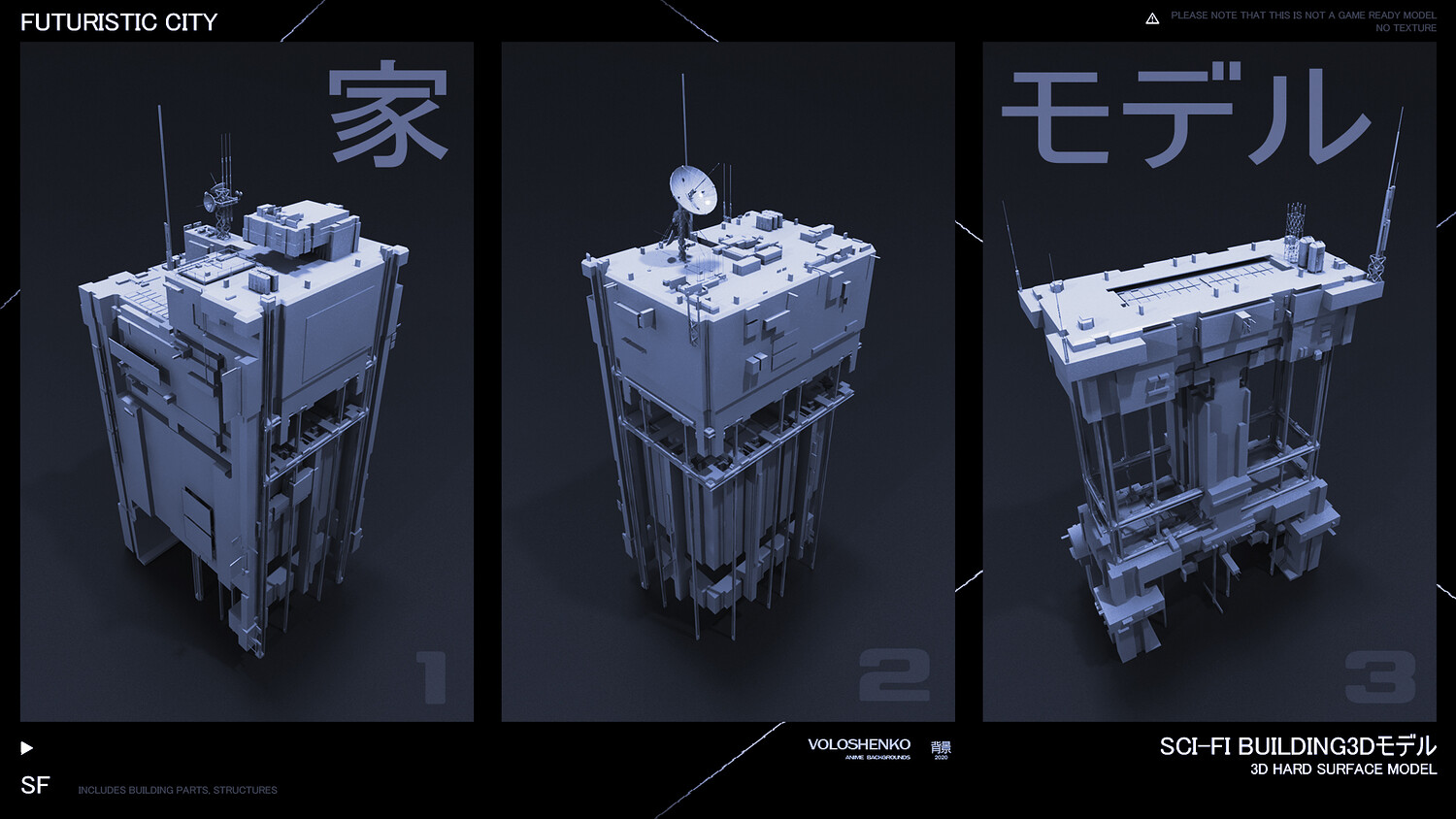 Sci-Fi Buildings 3D hard surface models